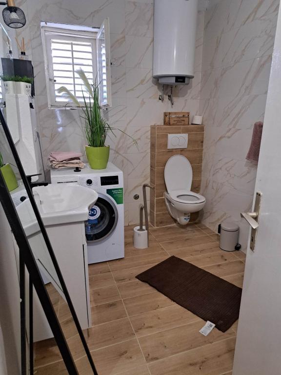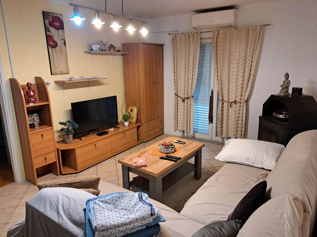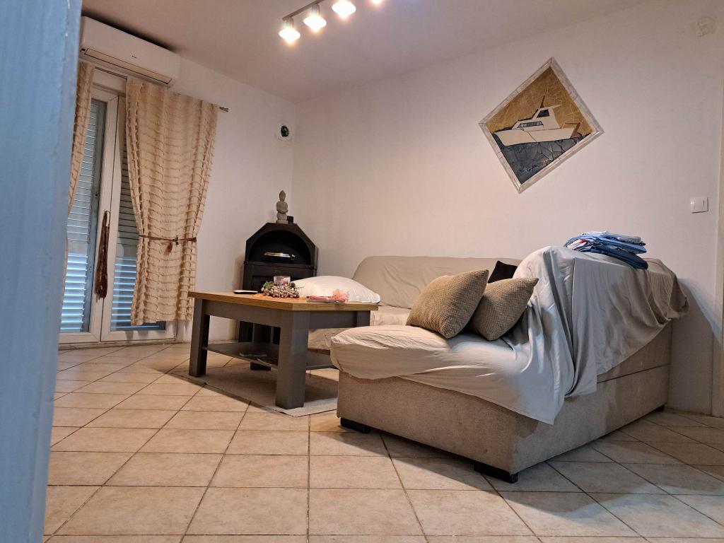 Surrounded by an olive grove, 3 rows from the sea in the very center of Žaborić, this apartment is located. The facility is 1 minute walk from the beach, that is, from the center itself, so everything is at your fingertips. The spacious apartment is suitable for larger families.