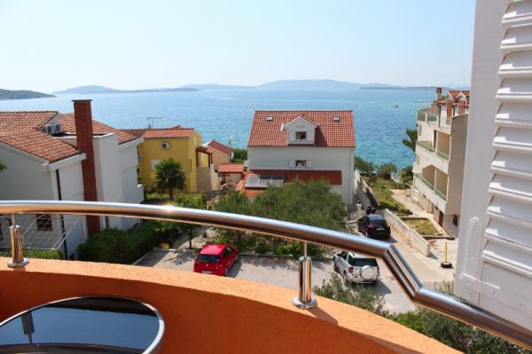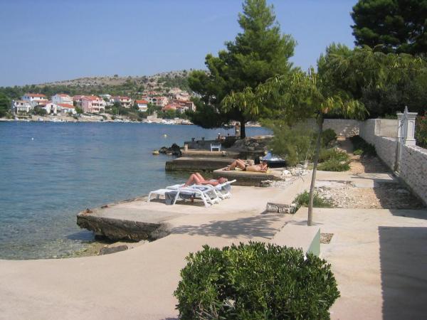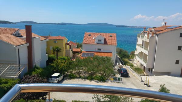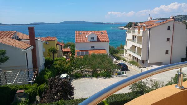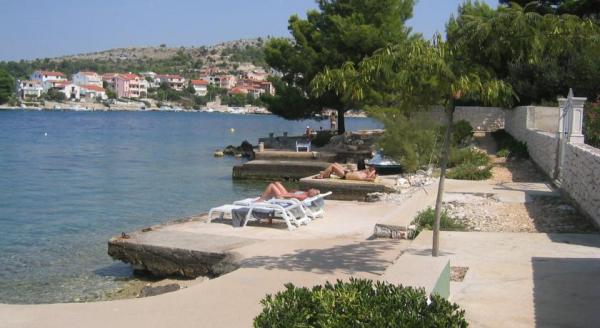 Apartment house with 3 apartments, in a quiet and sunny position. To the sea and the beach 50 m. 1 km to the center of Žaborić, 8 km to Sibenik, 14 km to Primošten. Close to the National Park Krka and Kornat, hotels Solaris For shared use: barbecue, table tennis, outdoor shower. Fenced parking on the plot. 3 4-room apartment for 6 persons, on the 1st floor, 80 m2: Living room, sat / TV / LCD, air conditioning, exit to balcony (8m2, sea view). Kitchen (4 glass-ceramic hotplates) with dining table. 1 bedroom with a French bed (160x200 cm), exit to the same balcony. 1 bedroom with a French bed (140x200cm). 1 room with bunk beds (2x90cmx200cm). Bath / WC. Separate toilet. 33-room apartments for 4 people, on the 2nd floor, 40 m2 / apt. Green and Red: Living / dining room, sat / TV / LCD, air conditioning, exit to balcony (2m2, nice sea view). Open kitchen (2 glass-ceramic hot plates). 1 bedroom with a French bed (140x200cm). 1 room with bunk beds (2x90 cmx200cm). Shower / W