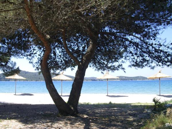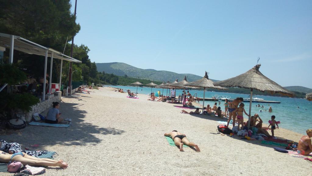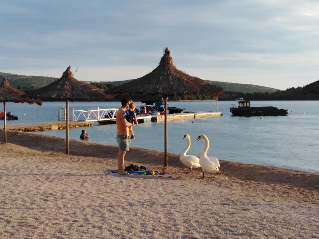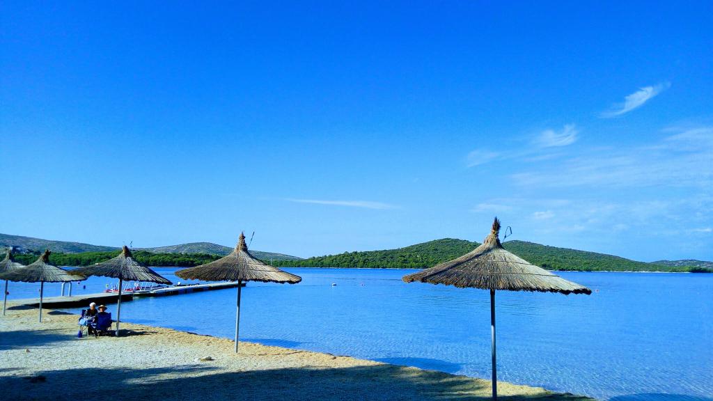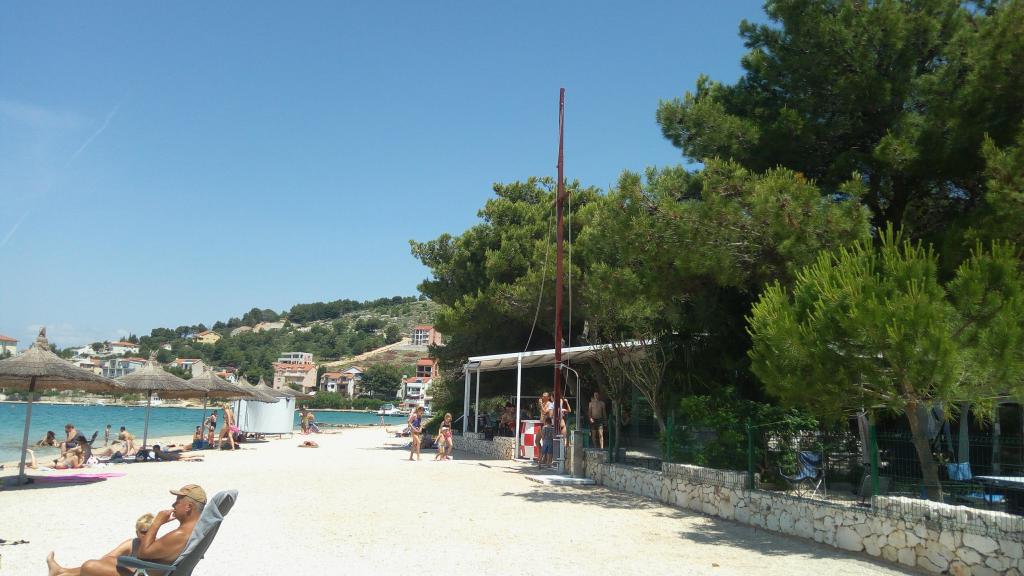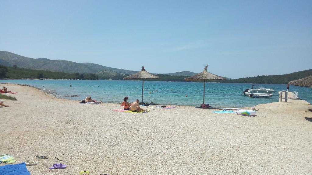 Very calm, uncrowded, nice beach inside the bay, which can be reached by electric cart. Location right near the beach, very large apartment on the ground floor - trip by a very heavy electric wheelchair through the terrace - only one step and threshold - we had our own driveways - so for us it was OK; due to our very unusual needs - a disabled person with us used a huge shower at an adjacent campsite on the way from the beach. Apartment in the style of the 90s - maybe not the latest fashion, but well-kept and very clean, air-conditioning and full equipment. And most importantly - JOŠKO - a golden man - incredibly kind and helpful, with whom you can have a nice chat, drink what anyone likes to play billiards and table tennis. JOŠKO - THANK YOU !!! BEST REGARDS !!! SEE YOU SOON !!!