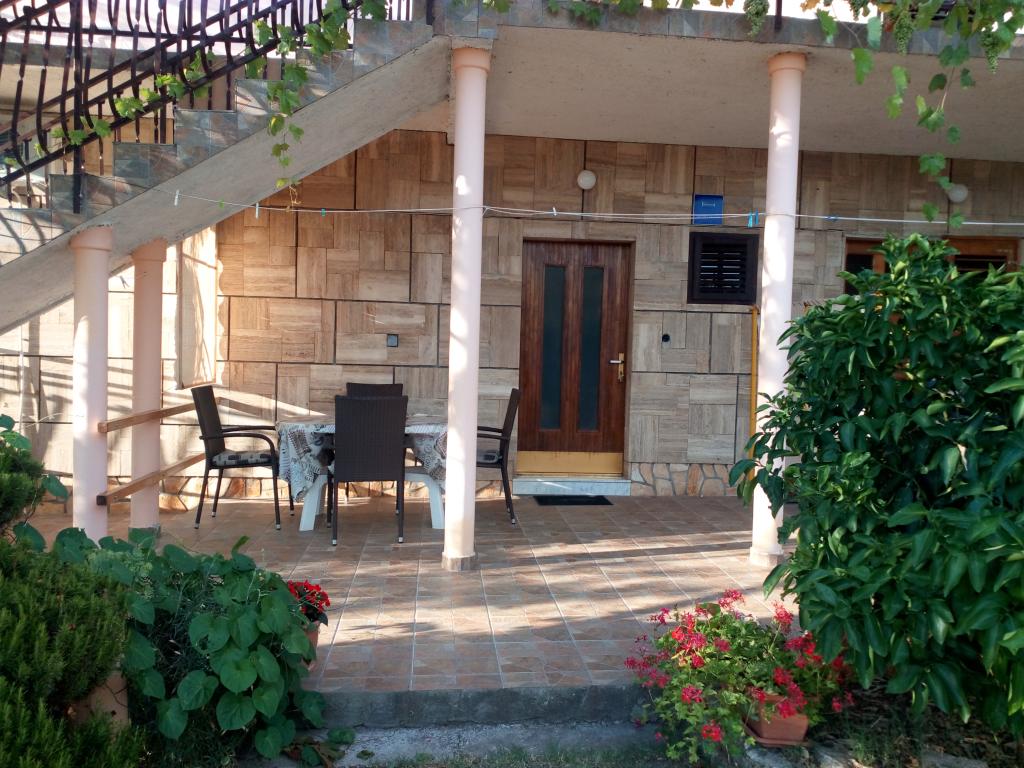 First of all, wonderful hosts who welcomed us as if we were longtime friends. The apartment is extremely clean, spacious, fully equipped. The terrace is beautiful, with a large table and plenty of space to enjoy. Guests can also use the barbecue, which is located in the yard, right across the street from the apartment. The beach is a 1-minute walk from the apartment and has a beach bar.