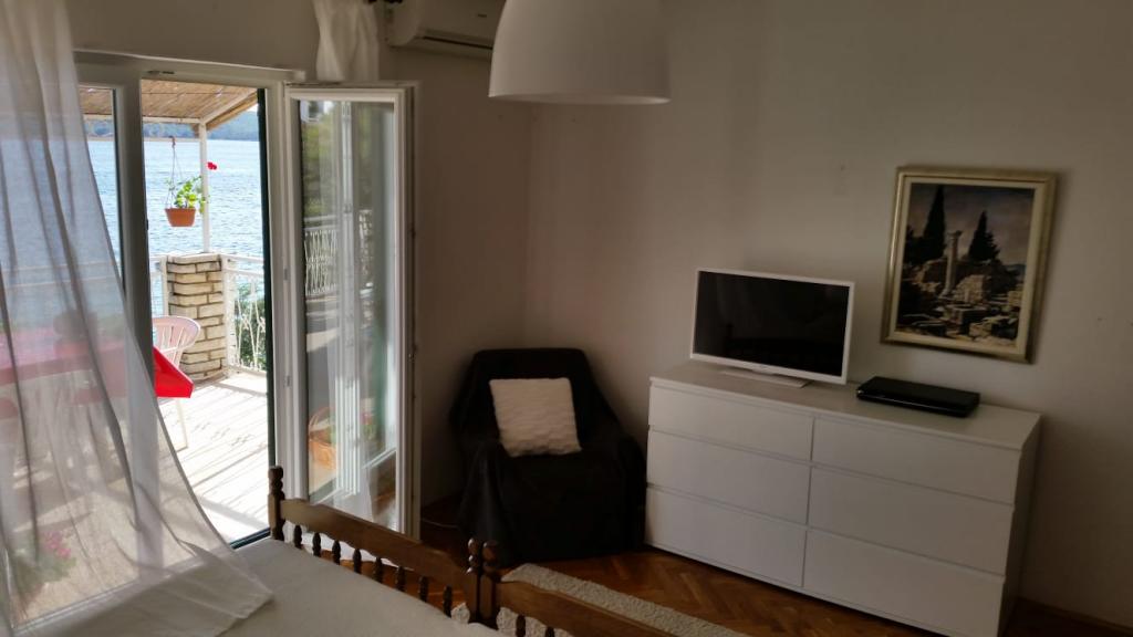 The house is really located right on the coast next to a small, almost private beach. If you are traveling with children, you can watch them from the balcony while they swim in the sea. The view from every room is fantastic and soothing. It is quiet and peaceful at night. The apartment is spacious and comfortable with two air conditioners. The kitchen is also equipped for those who like to cook while on vacation. Two shops only a few minutes away. The owners are special in the best possible sense. If you "miss" anything, the hostess Sandra delivers it in a very short time. They will provide you with everything to make you feel at home. A simple woman with a big heart. We will be back next summer.