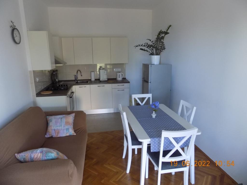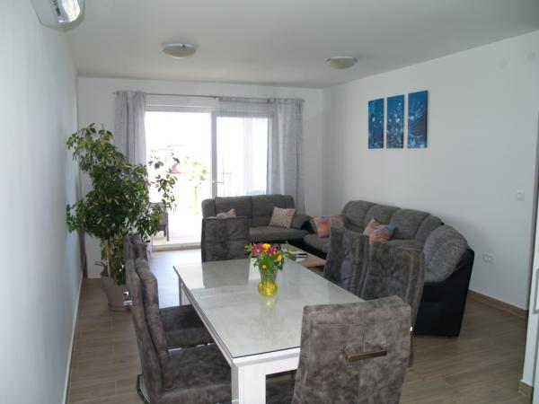 Very clean and well maintained apartment. The kindness and hospitality of the host was on high level. The pictures and description of the place corresponds to ad. The bathroom is not modern, but It's good. Very large terrace. Each room has a balcony. Two bedrooms also have access to the terrace. The kitchen is fully equipped. The sea is about 30 meters. Shopping available in town. For large purchases in supermarkets (Konzum / LIDL) can be easily reached by car. We would like to come back here at any time.