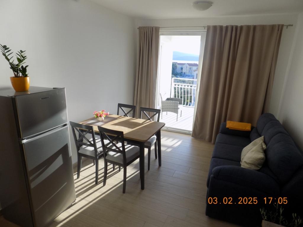 Apartment A6 is perfect. Well-equipped and clean apartment with a beautiful view of the sea and a large terrace. 3 bedrooms, 2 bathrooms with fully equipped kitchen. Overall, a pleasant environment, an outdoor shower, a parking lot and a place to store beach equipment. The host and his parents are nice and accommodating. Beach suitable for children, sandy and pebbly with a gradual entrance to the sea. The apartment is very close to the beach or 50 meters along the road. Possibility to rent a water bike, kayak, paddleboard. We recommend the beach bar Ginger, where they have excellent pizza, drinks, beer and excellent and fast service. The apartment is fantastic, I hope we come back.