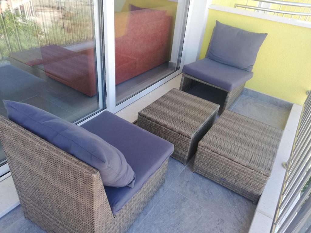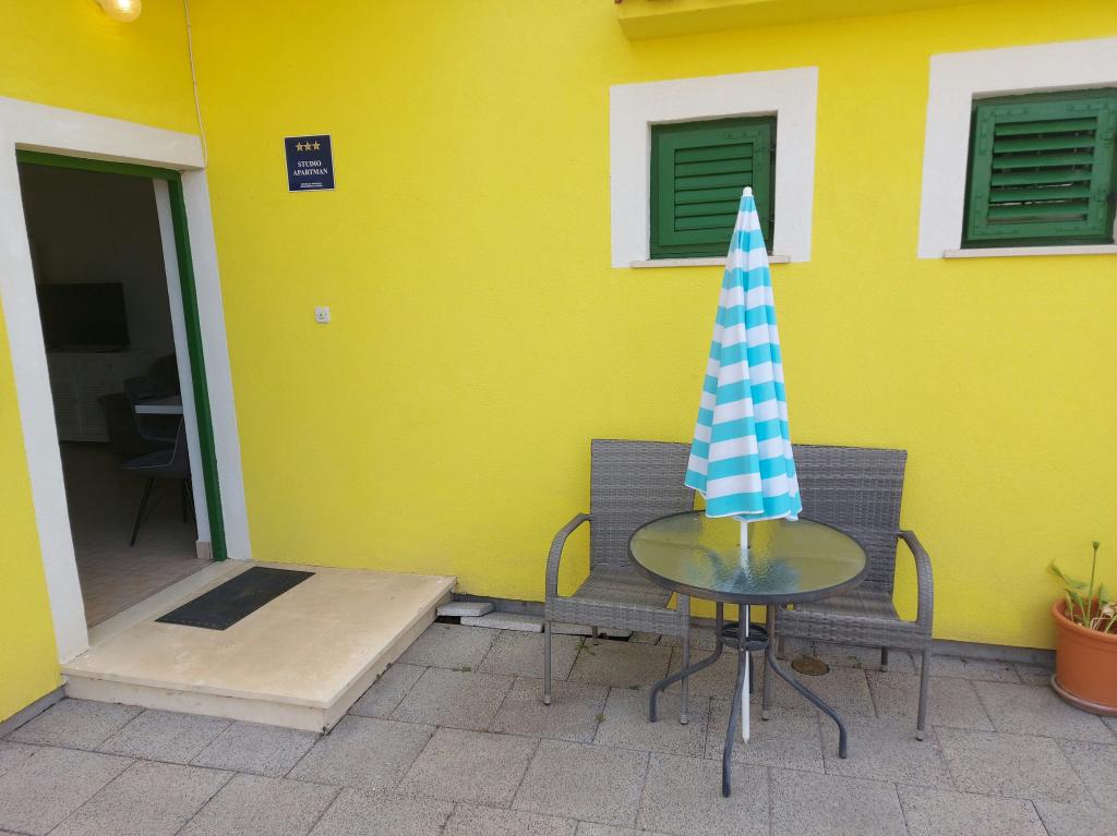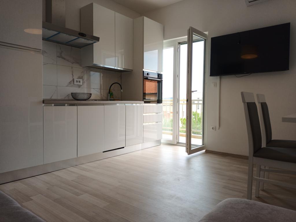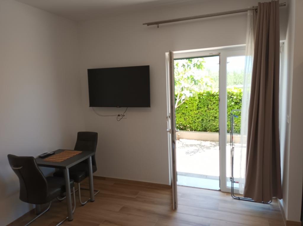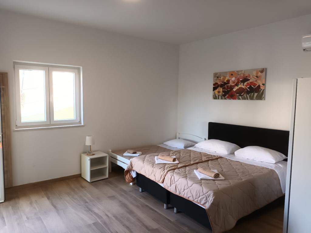 Read more Accommodation unitsApartment A 5+2 ID 79415 is located on the first floor and has: two bedrooms, one with a large double bed, the other with 3 beds for one person, a kitchen with a living room in which there is a sofa bed for two people, 2x bathrooms and a balcony with the table. Apartment A 3+2 ID 79447 is located on the first floor and has: one bedroom with a large double bed + bed for one person, a kitchen with a living room in which there is a sofa bed for two people, 2x bathrooms and a balcony with a table. Studio Apartment A 2+1 ID 79448 is located on the ground floor and has: double bed + single bed, kitchen, bathroom and terrace with table. Studio Apartment A 2+0 ID 79449 is located on the ground floor and has: a double bed, a kitchen, a bathroom and a terrace with a table. Advance payment of the reservation is 20% in advance to the renter's bank account, the rest upon arrival. The advance payment is non-refundable. Check in is from 3 pm, check out until 10 am.