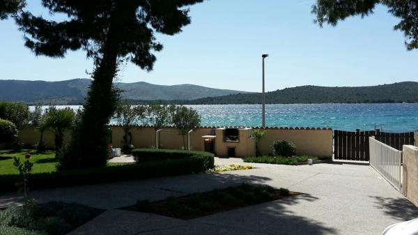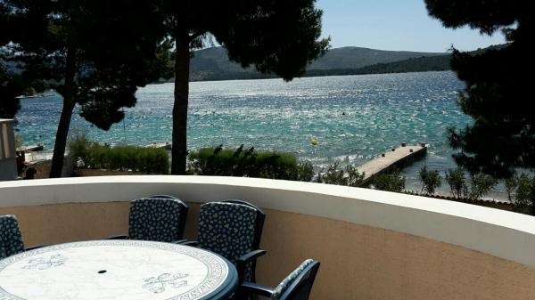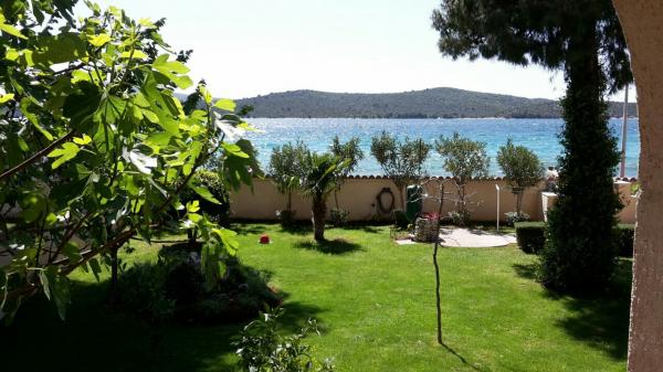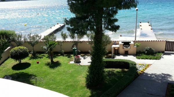 A beautiful villa in a great location. Right on the beach, first row to the sea. Guests sunbathe and rest in the garden on deckchairs. After bathing, an outdoor shower is available. Wi-fi is free. Apartments 1 and 2 have a dishwasher. All apartments have a sea view.