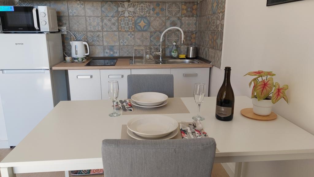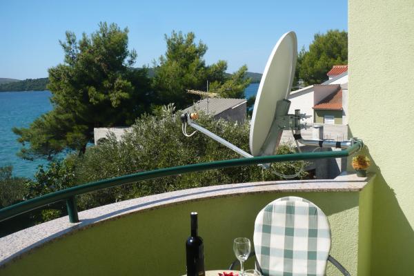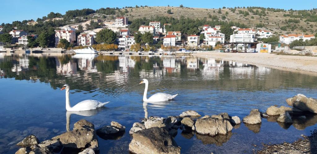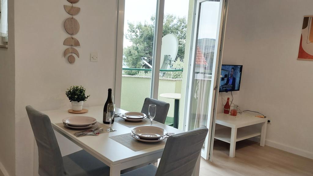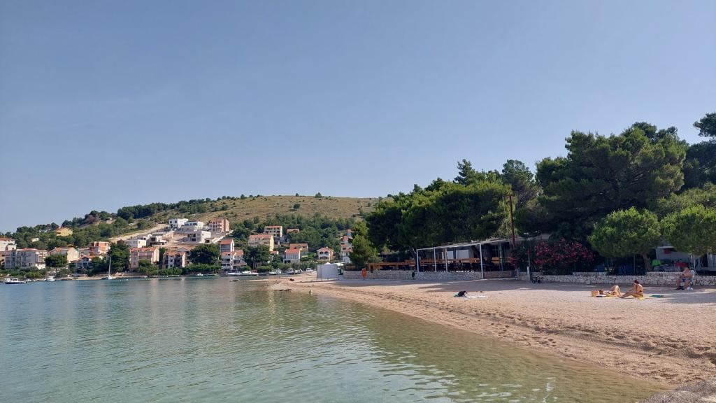 Apartments Marta are located in the village of Žaborić, in the quiet bay of Jasenovo, just a few steps from the sea. You don't need to cross the highway to get to the beach! Each apartment has a terrace or balcony with a sea view. The apartments have a modern kitchen, a microwave oven and a kettle. They are equipped with new air conditioners, televisions and satellite programs. The entire facility has an excellent wi-fi signal. The apartments have a shared garden with the possibility of using a barbecue. Free private parking is available within the facility. In the bay, there is the restaurant Veranda, a cafe with a trampoline and the Jasenovo camp with a beautiful pebble beach where you can find another cafe and a pancake house. There is a bakery near the apartment, and Studenac and Djelo markets are located 1.5 km from the house. Shopping center Dalmare, Lidl and Kaufland are 6 km away, and the historic town of Šibenik is 14 km away. Krka National Park and Kornati National Park are also nearby.