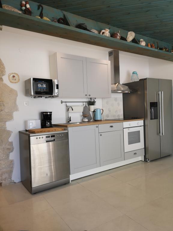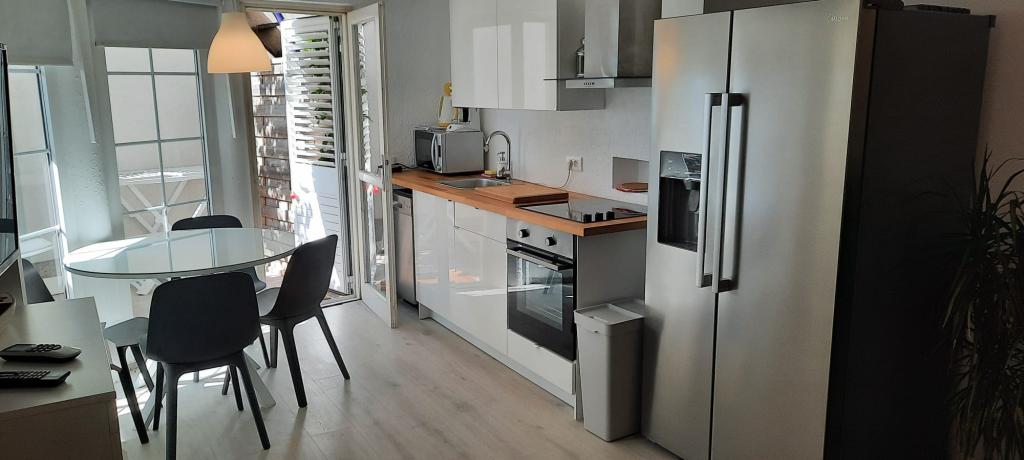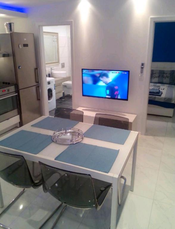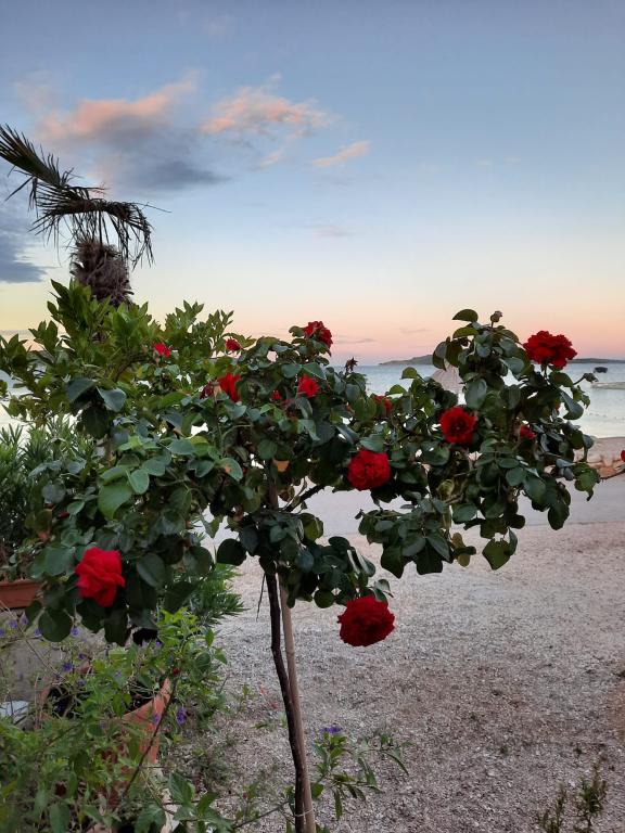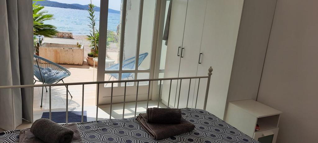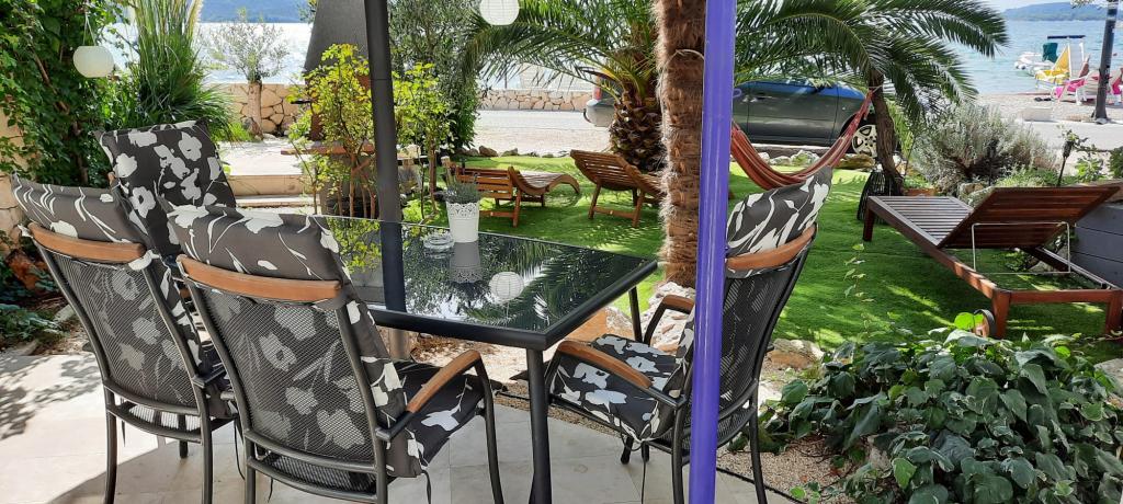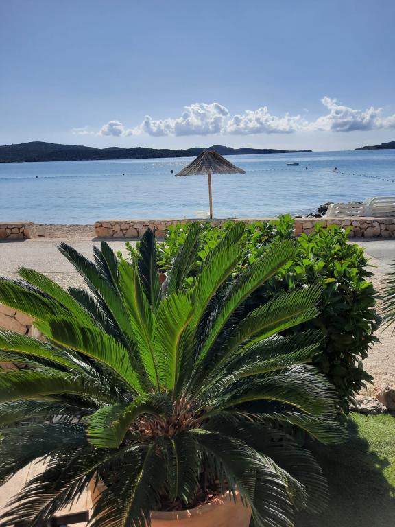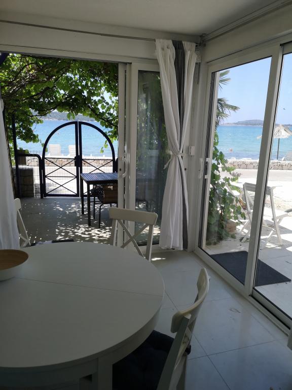 Completely and modernly equipped apartments in a quiet place Zaboric near Sibenik, located first row to the sea. The beach is right in front of the building at a distance of 5 meters from the apartment. All apartments have a sea view. All apartments are equipped with all household appliances from dishwasher, washing machine, microwave, hob, oven, kettle, refrigerator with freezer,, TV SAT, WI-FI internet, hair dryer, toaster. Some apartments have an ice machine. All apartments have free parking, and free use of barbecue in the yard as well as free beach chairs. Pets are allowed. Possibility to use boat moorings up to 7 meters, and parking for the trailer. Baby cot on request. Guests can relax on a hammock in the shade of the garden. It is possible to rent a boat and jet ski next to the house. There is a water trampoline for children nearby, as well as a land trampoline.