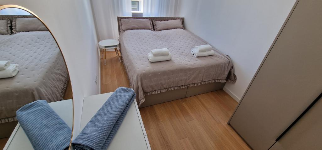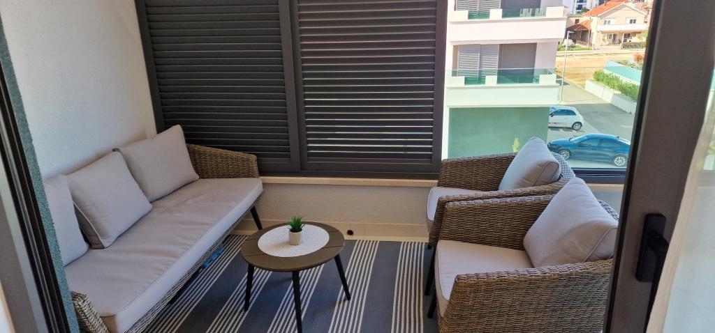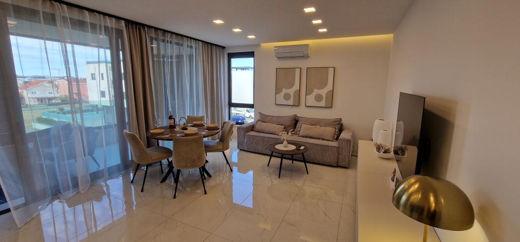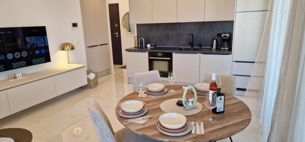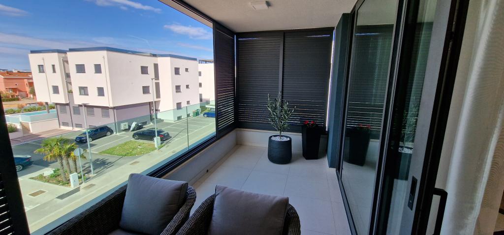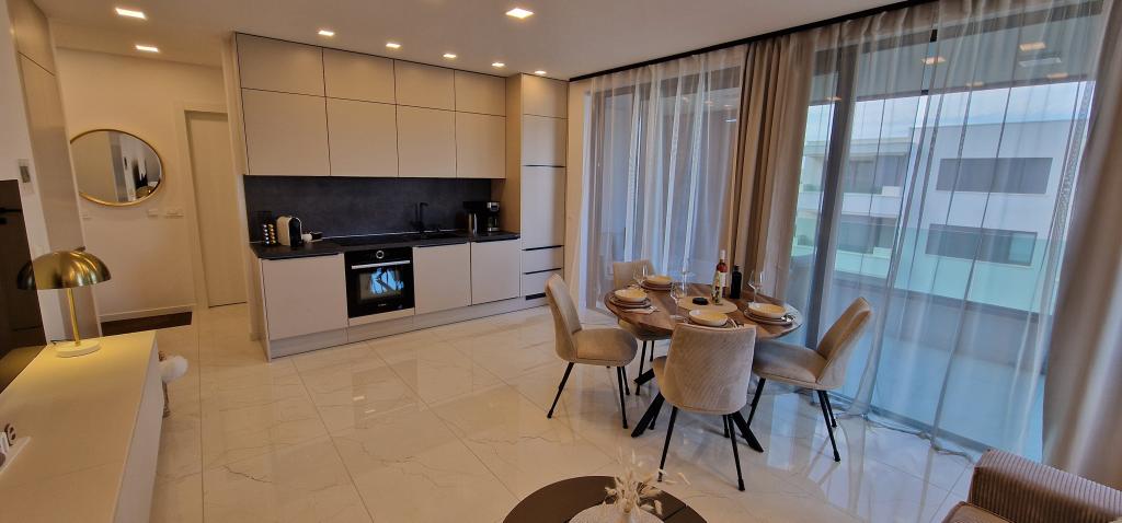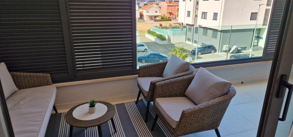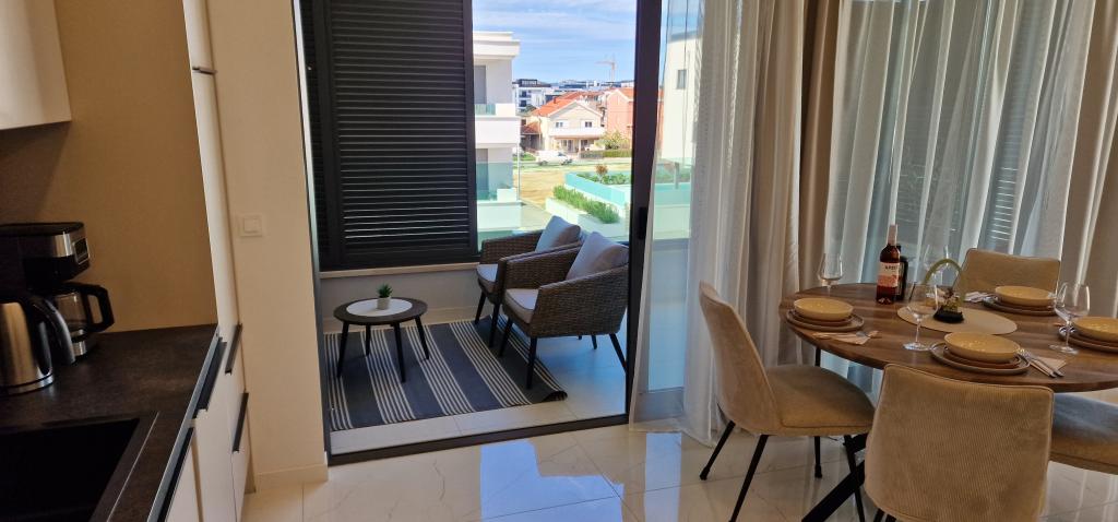 Ambiente Borik is a new seaside apartment offering the perfect blend of comfort, space and ambience. It is located in an exceptional location "Borik Zadar" near the well-maintained beaches and the Falkesteiner Hotel. The living room is spacious and bright, ideal for relaxing and socializing. The kitchen is fully equipped with all necessary appliances and cooking utensils. With two bedrooms, each equipped with comfortable beds and elegant furniture, and two bathrooms, it provides enough space to accommodate 2 couples or a group of up to 4 guests. The large terrace offers additional space for relaxing outdoors. On the terrace you can enjoy breakfast or an evening drink, with privacy and a quiet corner for relaxation. The apartment is luxuriously furnished with carefully selected details. There is also a private parking lot and a garage that ensure convenience and safety for guests arriving by car. In short, this seaside apartment offers everything you need for a comfortable stay. The elevator is a welcome addition after a tiring walk along the Zadar waterfront.