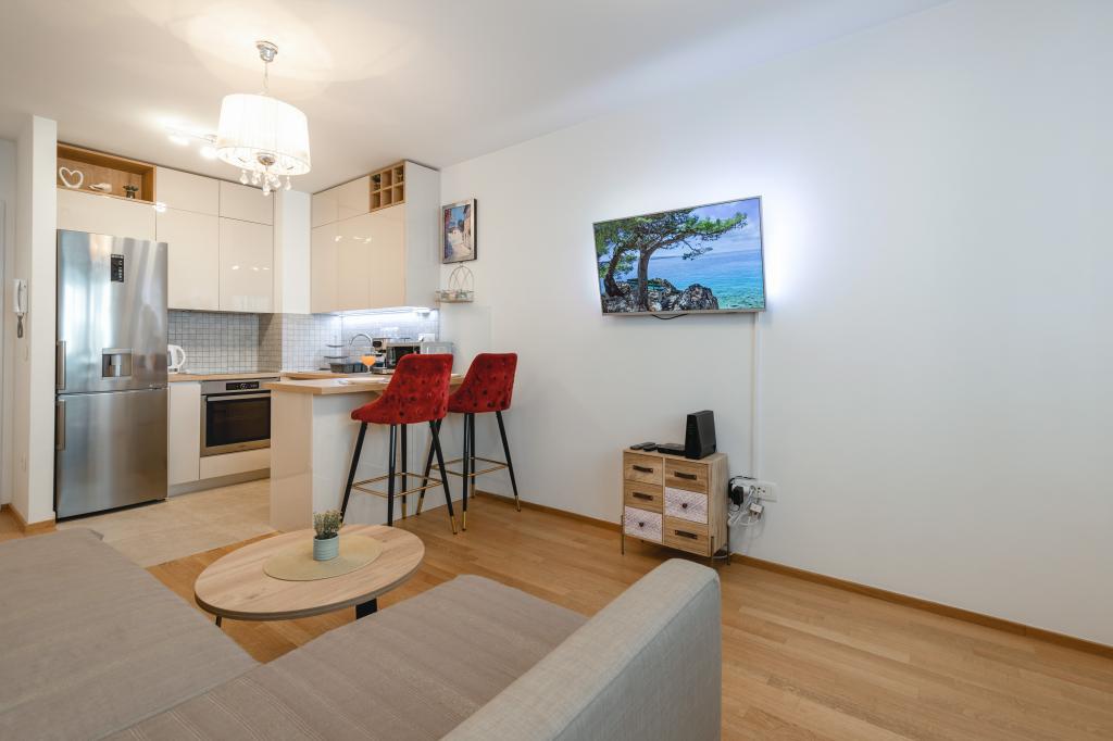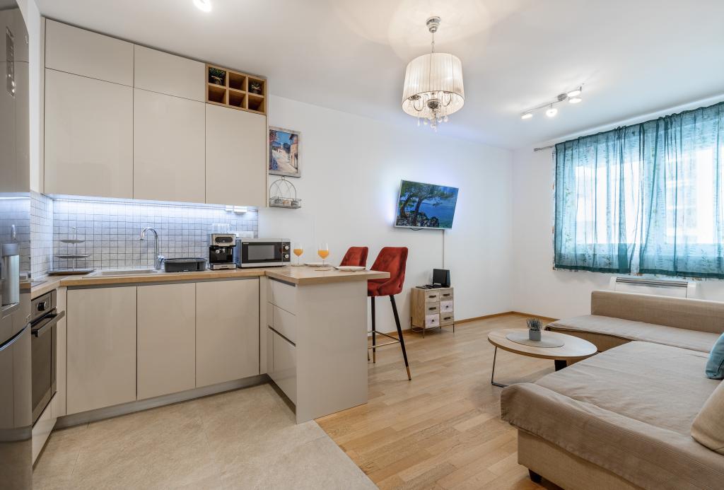 Enjoy a comfortable and modernly decorated apartment for two people, perfect for a relaxing stay in beautiful Zadar. The apartment is ideal for couples, business guests or active travelers who want to be close to the city center, as well as sports facilities. The apartment is located in an excellent location - just a fifteen-minute easy walk from the city center, while the Višnjik sports center is only 200 meters away. There are also large Lidl and Kaufland shopping centers nearby, which you can reach on foot. A special advantage of the apartment is a private parking space right next to the building, just a few meters from the window, which is a real rarity in an urban part of the city. The location allows for a quieter stay away from the city crowds, and yet offers the possibility of an easy walk to the city center. Start the morning with a walk towards the old town, spend the day by the sea or on the Višnjik sports fields, and in the evening relax in the peace and comfort of your own apartment.
