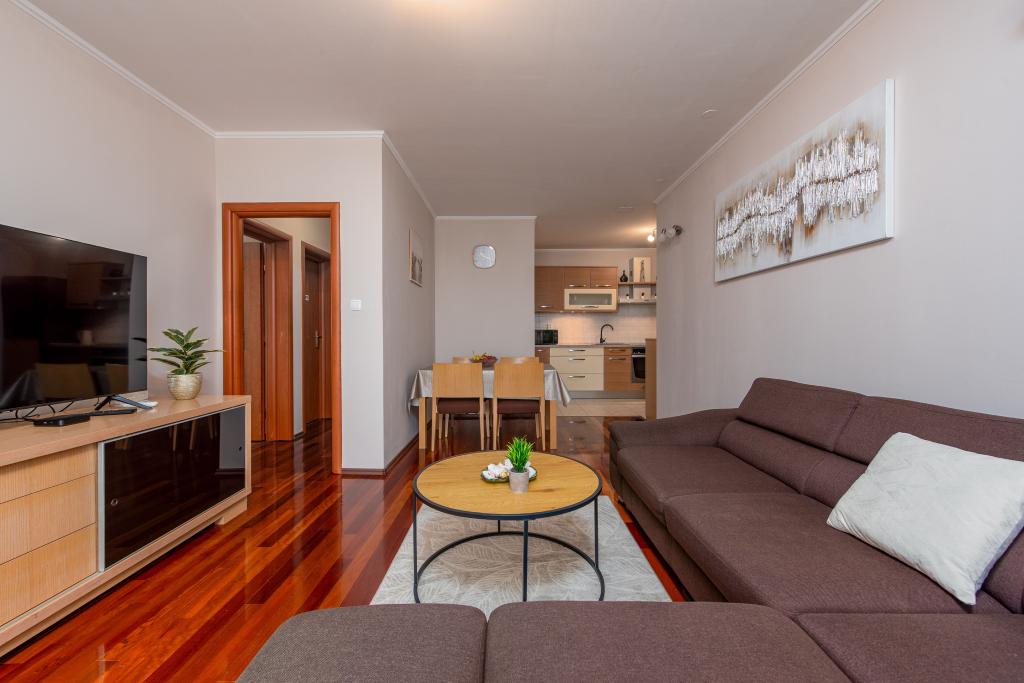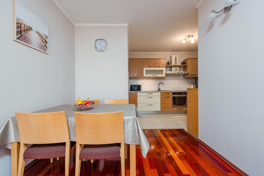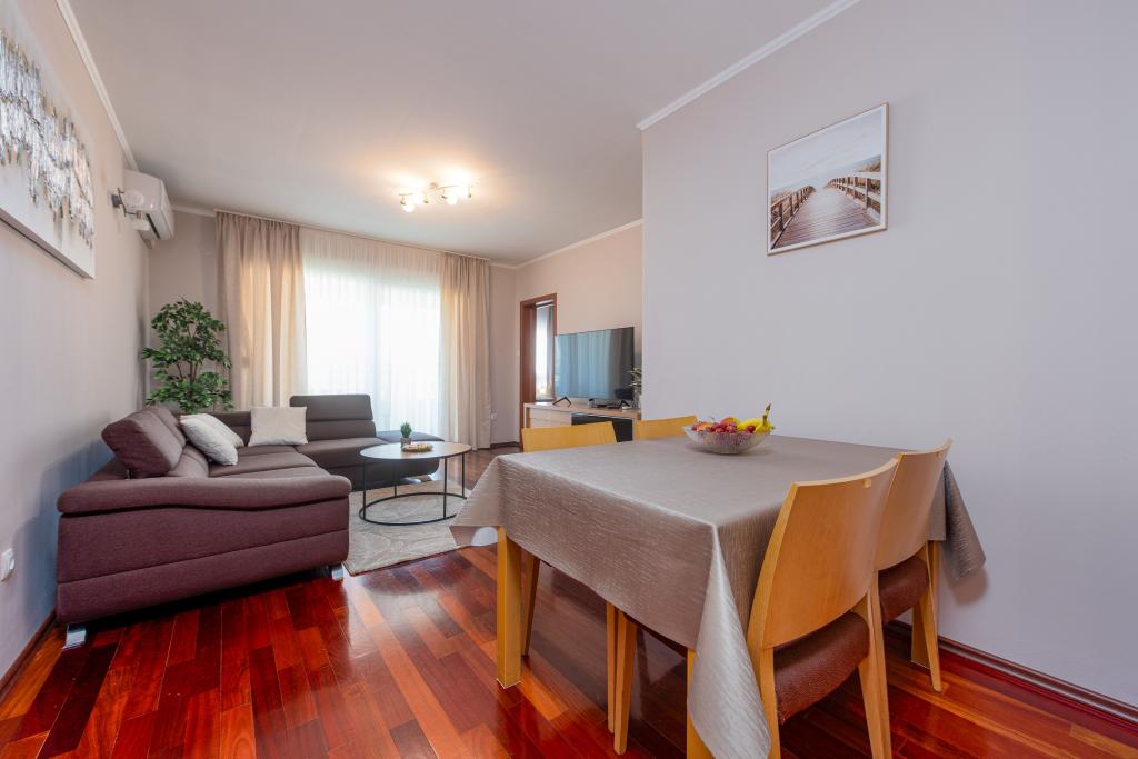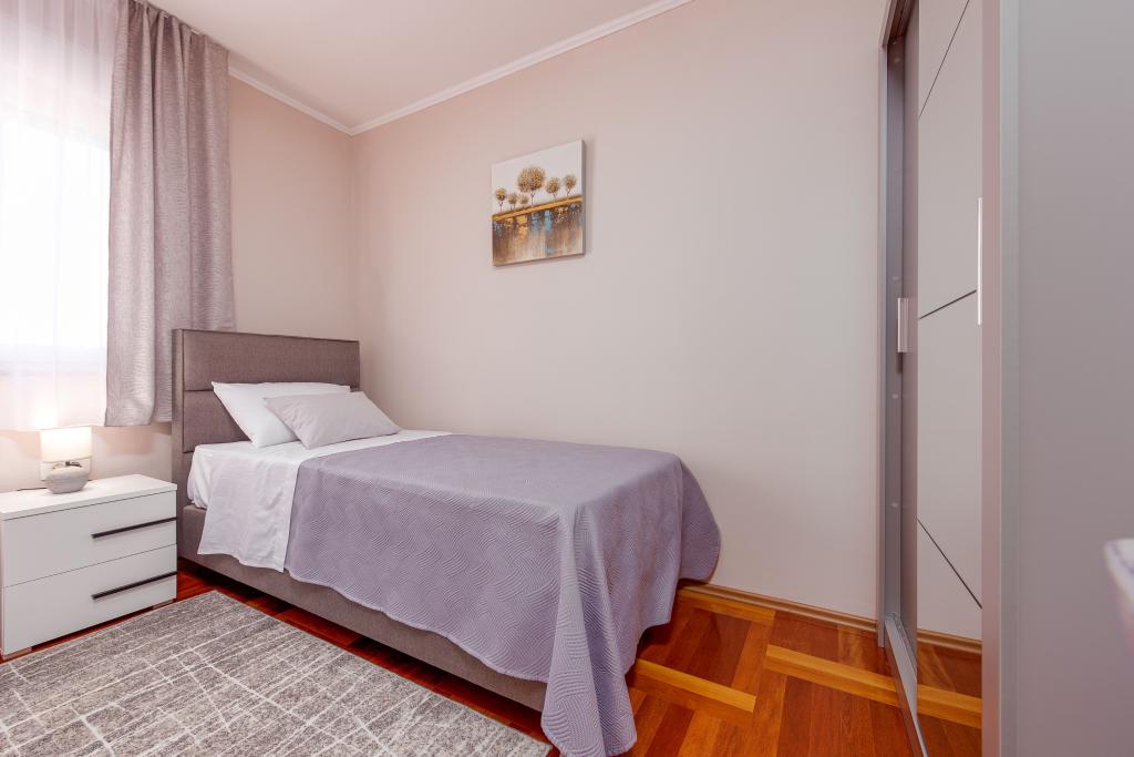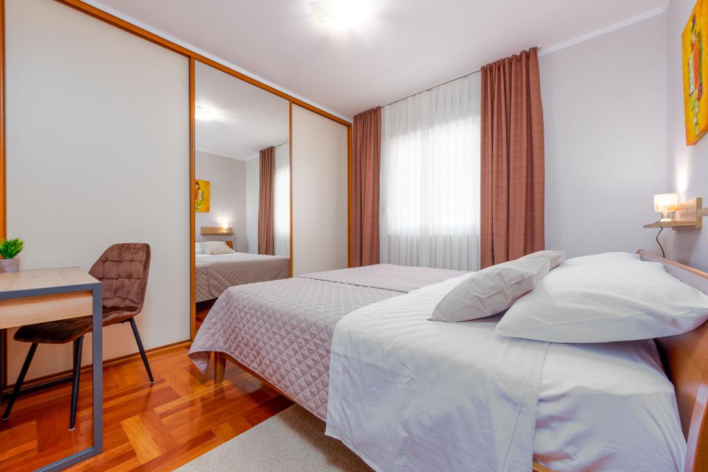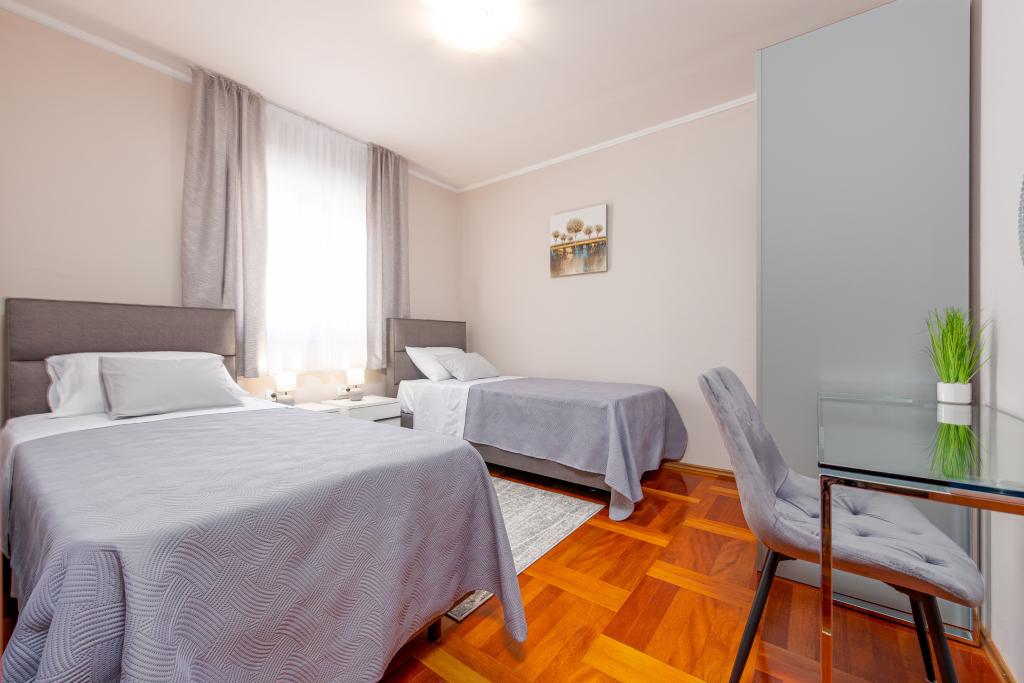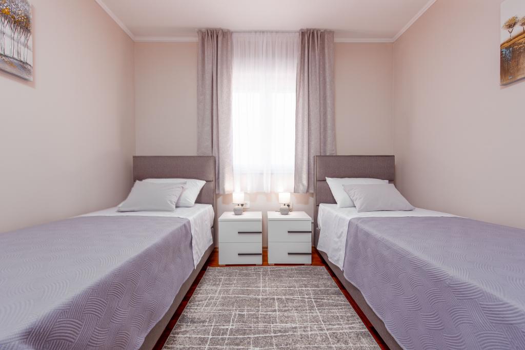 Apartment Matea consists of two bedrooms, a fully equipped kitchen, a living room, a bathroom and a terrace. It is located in a quiet and attractive location, near the old town, the beach and the train station, opposite the City Galleria, which has various shops, a supermarket, a pharmacy, a gym, a cinema, cafes and more. There is a parking lot in front of the building, which is free for guests of the apartment. Smoking is prohibited in the apartment, except on the terrace.
