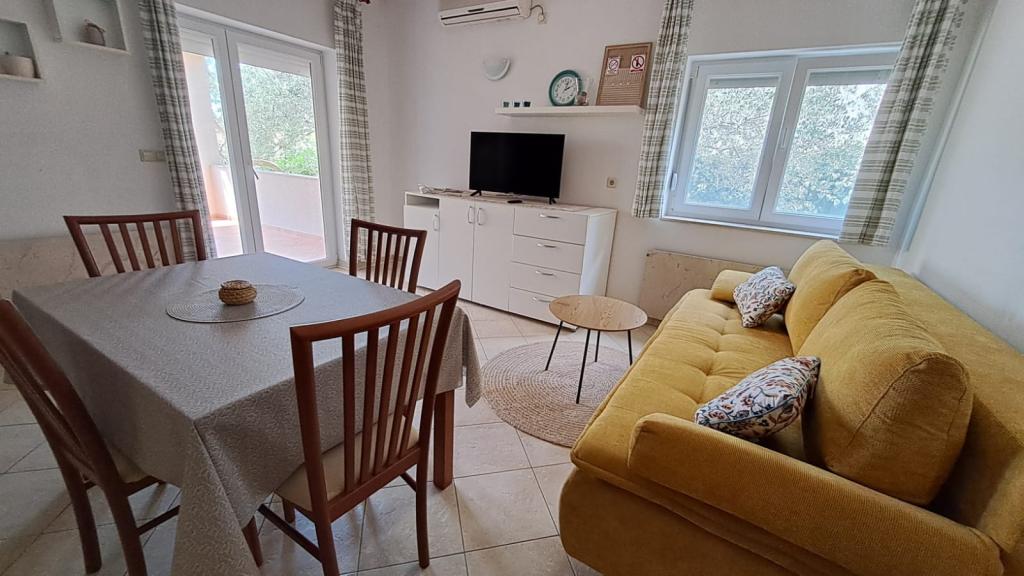 Apartment M&M in Zadar offers family accommodation including: a terrace with a sea view, air conditioning, free WiFi, an equipped bathroom and kitchen, and free parking on site. Located in a family house with a garden, on the 2nd floor, it has 1 bedroom with a double bed and a sofa bed in the living room. A baby cot is also available at no extra charge if needed. The apartment is located 15 km from Zadar Airport, a 5-minute walk from the nearest beach. Nearby there is a shop, pharmacy, gas station, bank, shopping center (Hey Park), nautical marina "Borik", sailing club "Uskok", several good restaurants, etc. Children of all ages are welcome. Smoking is not allowed. Parties/events are not allowed. Pets are not allowed.