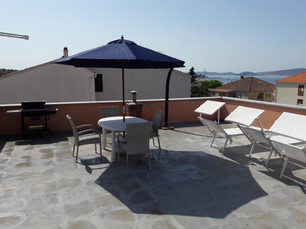 The apartments are located in a quiet area, in a row of family houses, in the first row of houses along the main road leading to the sea, a small harbor, only 70 meters from the sea. The property is located 2.5 km from the center of the old town, a 25-minute walk along the sea to the old town or a 5-minute walk to the official beach.