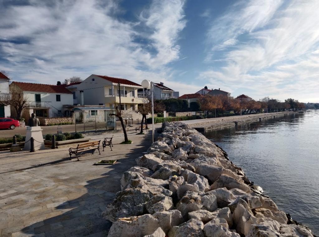 Fully and modernly equipped apartment in a quiet area of DIKLA. LOCATED RIGHT NEXT TO THE SEA - FIRST ROW. with a beautiful view of the sea. The building is located 10 m from the center and 10 m from the beach and the sea. To the northwest of the city of Zadar, 6 km from the old city center and right next to the Puntamika tourist area, is the tourist village of Diklo. An elite summer resort near the 3000-year-old Zadar, known for its villas and private houses, and all the necessary infrastructure for a pleasant vacation. In Diklo you will find beautiful and easily accessible swimming pools, we recommend them to families with children. Pebble beaches are well equipped with additional facilities for entertainment and recreation, there are sports fields in the village itself, you can choose between land and water sports (tennis, basketball, football, sailing, fitness center, etc.). If you are looking for entertainment, there are many cafes and restaurants. Diklo is a village located in the heart of Dalmatia, near the city of Zadar. It is an ideal place for a quiet vacation without summer crowds, especially for families with small children