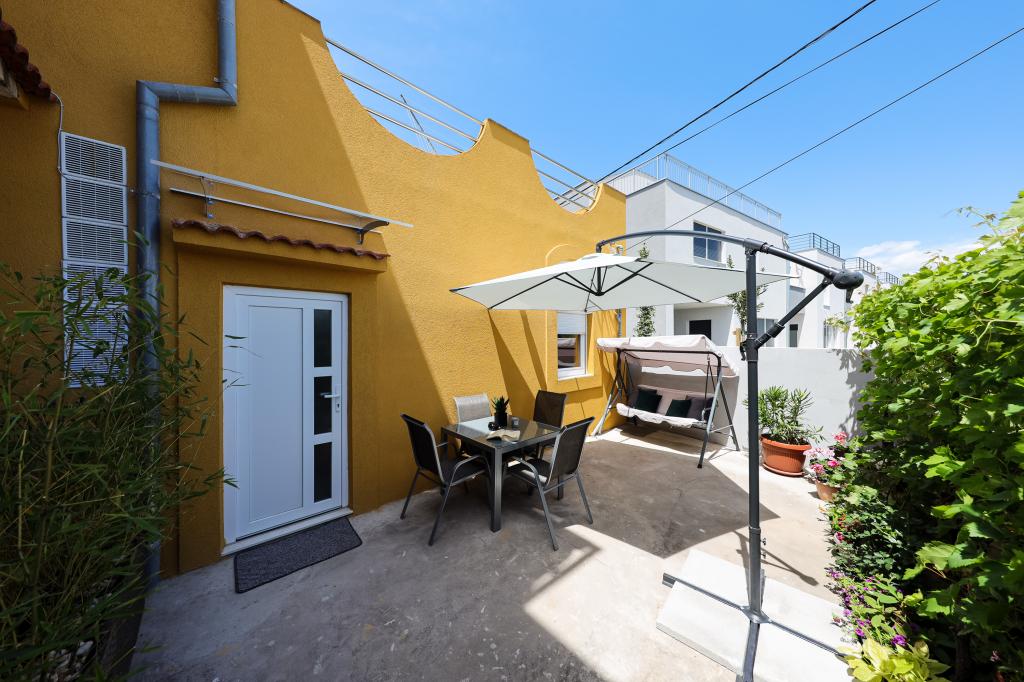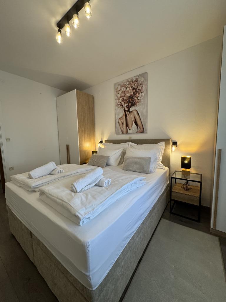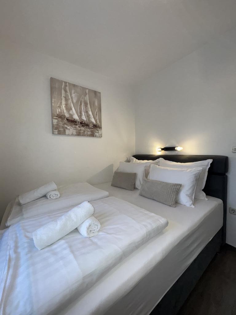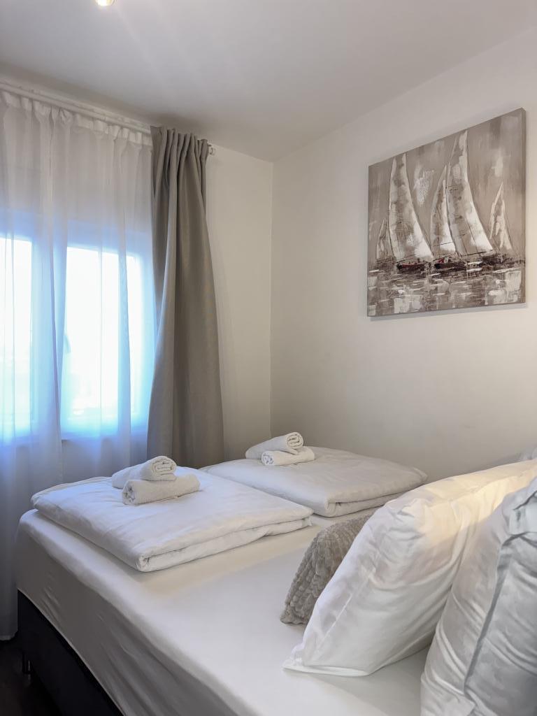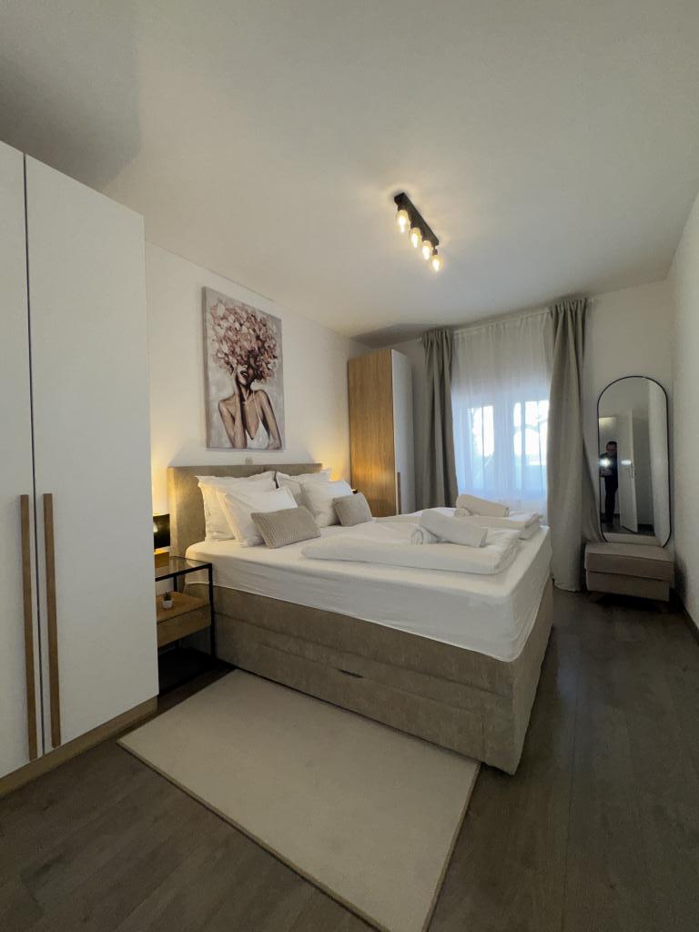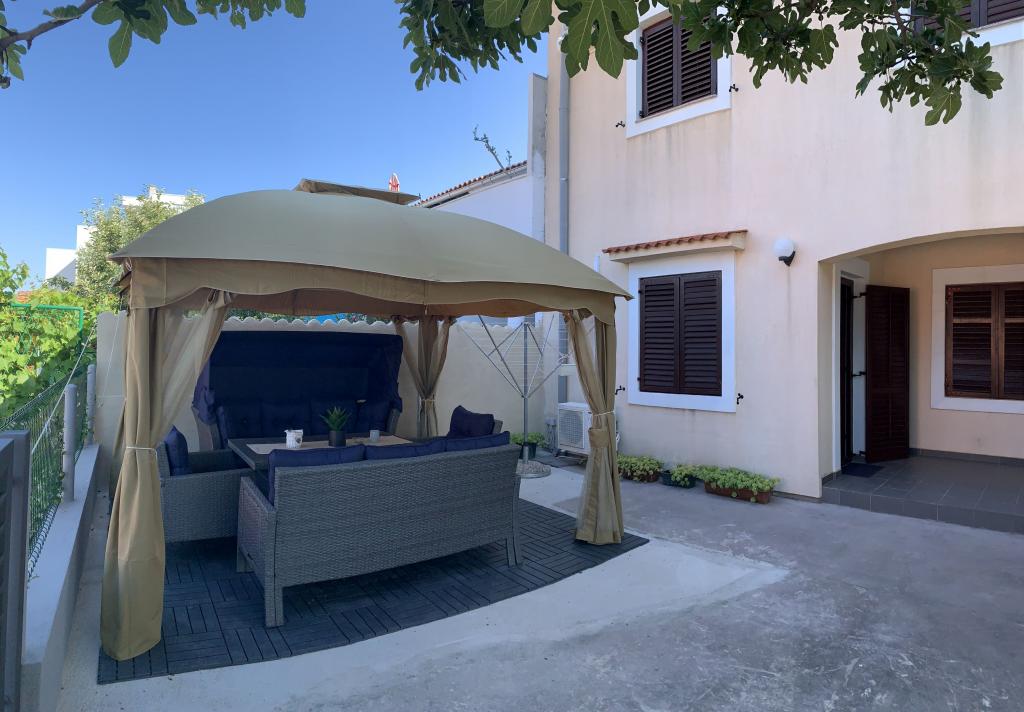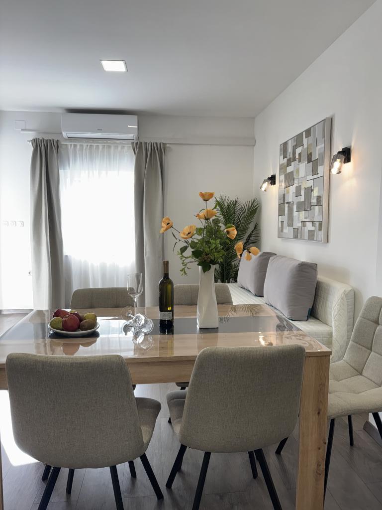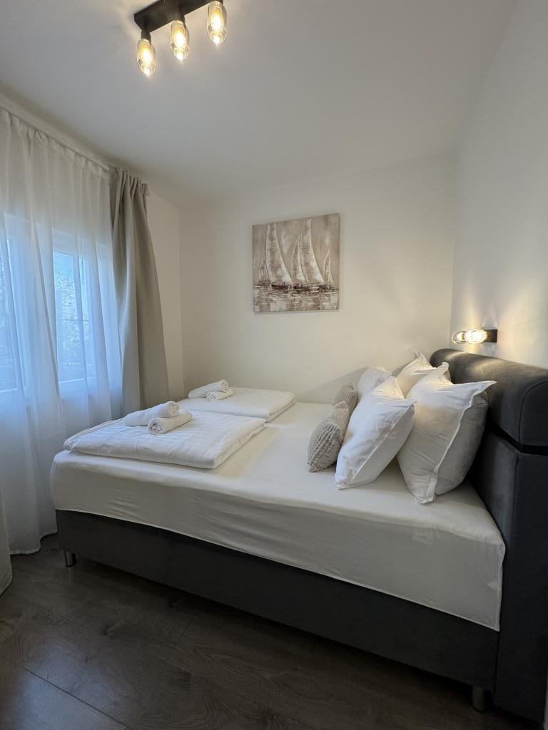 We spent a wonderful week in the 4+2 apartment. The apartment is very nice, modern, clean, spacious, and has everything you need for a vacation. A terrace with a gazebo, seating area, and a fig tree in the courtyard is a highlight. The promenade into town is a two-minute walk from the house. Parking is available in front of the house and is great. Samir is a very nice landlord and is always there if you have any questions. We would like to come back.