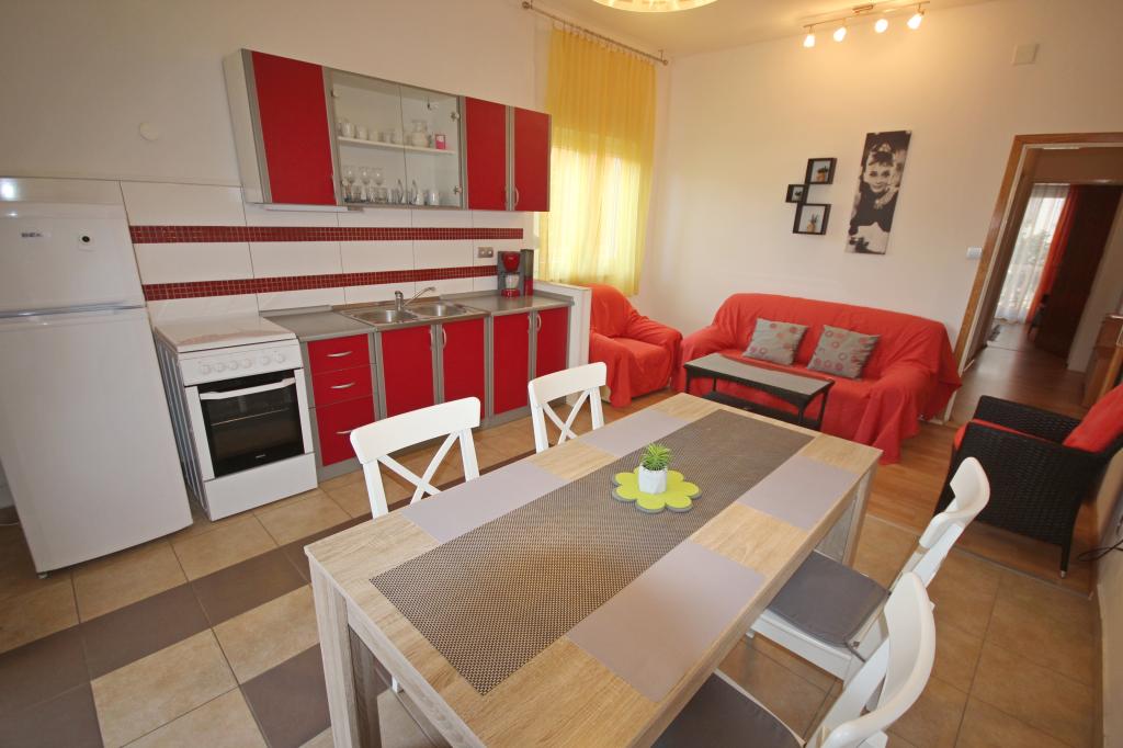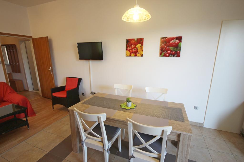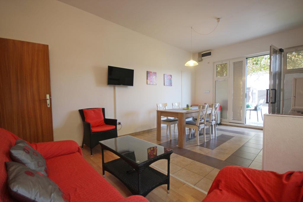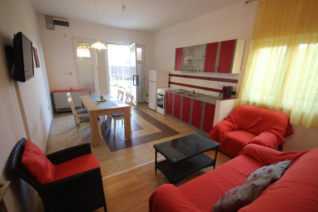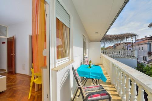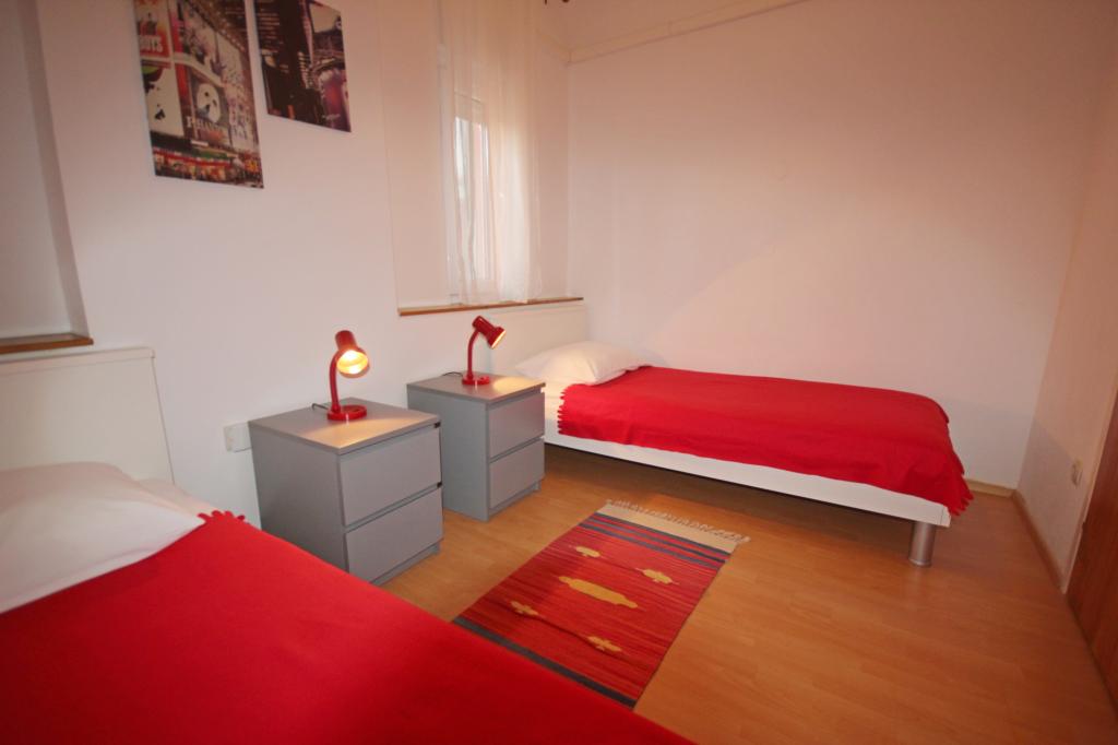Apartment in a quiet and touristy part of Zadar, called Borik. The facility is located 8 minutes to the beach, supermarket and bus station. The apartment is fully equipped with everything you need. It has two bedrooms, bathroom, large living room with kitchen and dining area, one balcony at the back and a terrace at the front. The apartment has air conditioning, satellite TV, wifi is available. Parking is in the yard. Guests can use the barbecue which is also located in the courtyard of the facility.