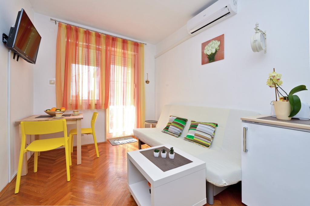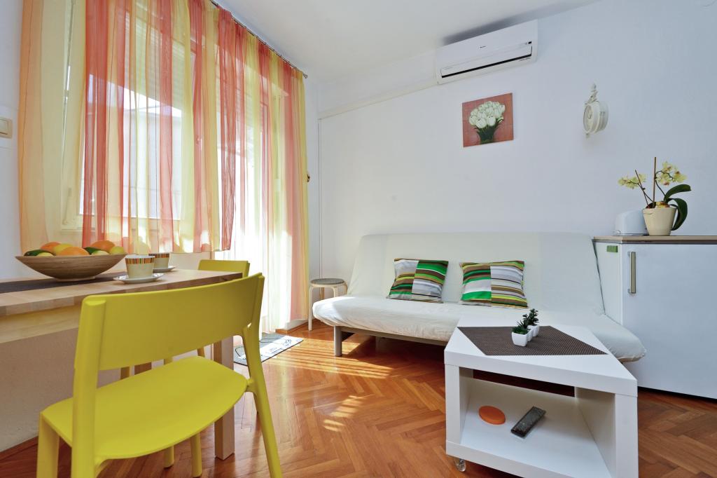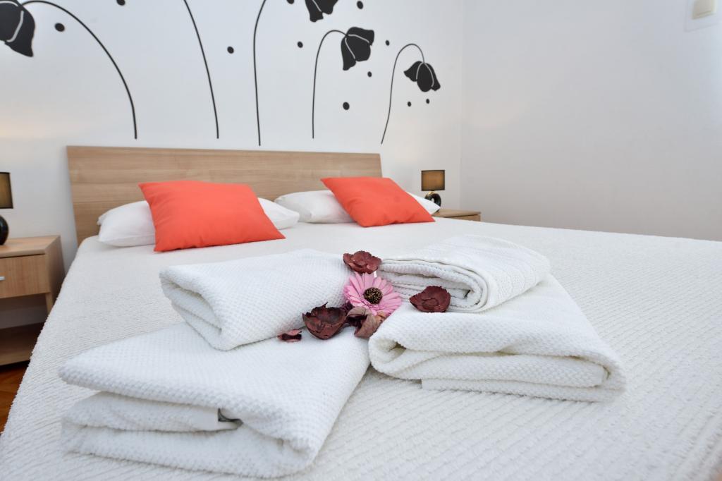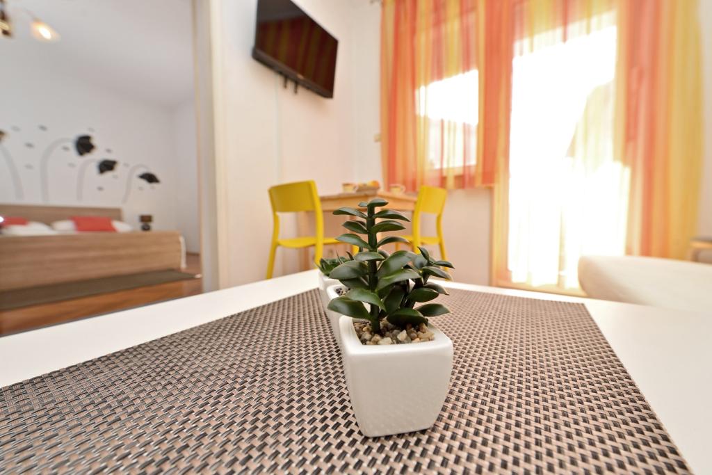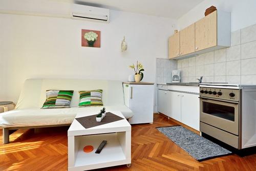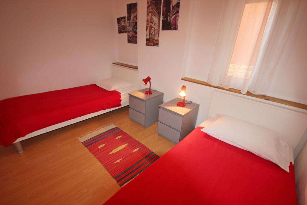 Apartment in a quiet and touristy part of Zadar, called Borik. The facility is located 8 minutes to the beach, supermarket and bus station. The apartment is fully equipped with everything you need. It has two bedrooms, bathroom, large living room with kitchen and dining area, one balcony at the back and a terrace at the front. The apartment has air conditioning, satellite TV, wifi is available. Parking is in the yard. Guests can use the barbecue which is also located in the courtyard of the facility.