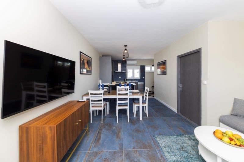 Newly renovated or rebuilt, I am not sure, fully equipped, spotless - it was a pleasure to come back to after a day in the sun or on the boat. Location does not look impressive on the map but it’s a 5 min walk from the marina and adjecent beach, the area is quiet at night. Highly recommended.