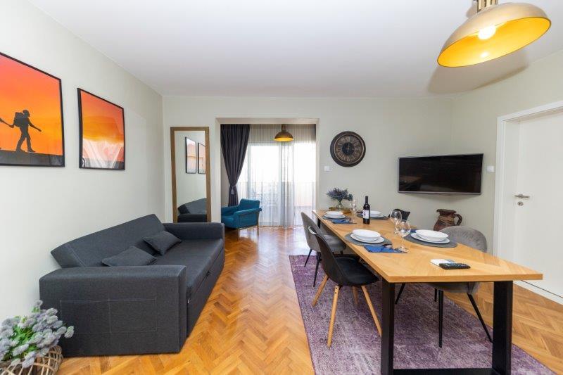 Quiet, villa neighborhood, close to beaches — a few minutes walk to Putnamika and Borik. We’ve had a car and it was a 5–10 min drive to the old town. The apartment was large, with a nice terrace. The kitchen is well equipped, so you can have breakfasts/dinner on the terrace. We’ve had a great time and we’d definitely stay again. All was good.