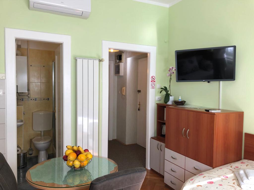 If you are looking for a nice accommodation in the city center, you've come to the right place. Apartment Anita provides everything you need for a comfortable, relaxed and convenient stay. Fully equipped studio is located on the ground floor and offers its guests a comfortable and peaceful accommodation. Apartment Anita is very conveniently located downtown, in the street with Fr Grga Tuškana Kvaternikov square, just 10 minutes walk from the main square, close to shops, restaurants, public transport access to any part of the city, banks with ATMs, post office, cinemas, hospitals, etc. Complete with love furnished studio apartment has one bedroom, bathroom and balcony. The room contains a separate bed and one double pull-out bed and kitchenette with fridge and stove. The rooms are accessible to the bathroom, containing shower, hair dryer and washing machine, and a balcony that overlooks the courtyard. This charming studio apartment in the apartment with separate entrance offers free wireless internet and flat TV with cable. Park