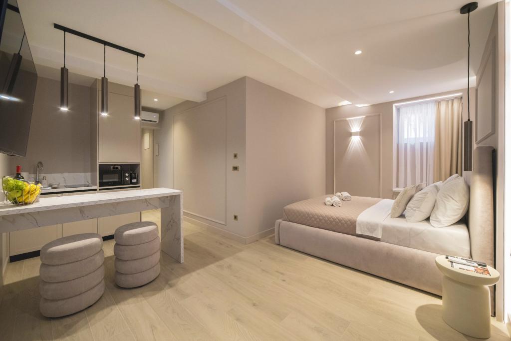 Newly opened in July 2025, our property offers 12 stylish and comfortable apartments in a quiet central location in Zagreb. All apartments are located on the fully renovated lower ground floor of the building. Every unit has one double bed. Two largest units can additionally accommodate a third guest with an extra folding bed. Each apartment features a private bathroom with all necessary amenities and fresh towels per guest. Nine Studio apartments include a compact kitchenette, equipped with a fridge, stovetop, microwave, kettle, and basic dishes – ideal for preparing light meals. The remaining units are Deluxe Rooms, which do not include a kitchen or fridge. All units are modernly furnished, with air conditioning, floor heating, and soundproof windows for maximum comfort throughout the year. We offer easy self check-in via code, and our hosts are available throughout your stay for any questions or assistance.