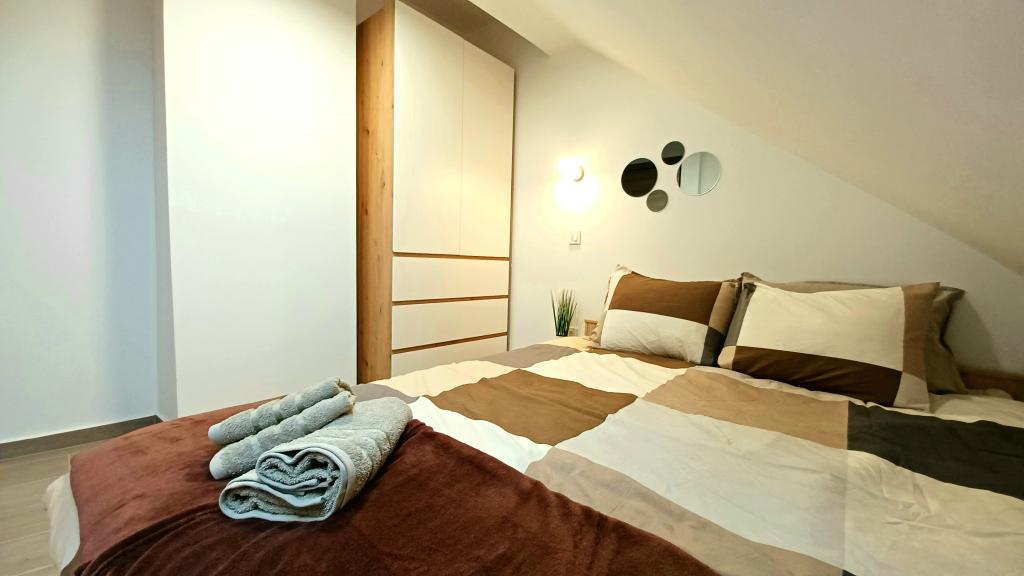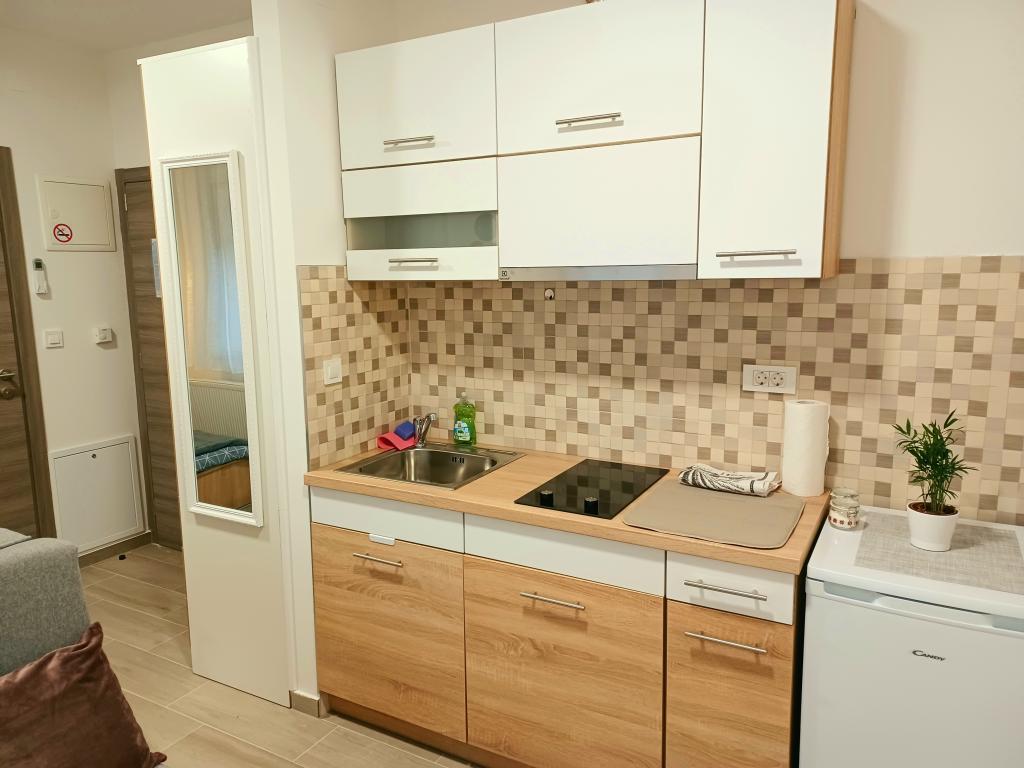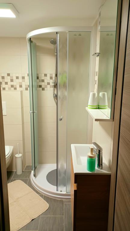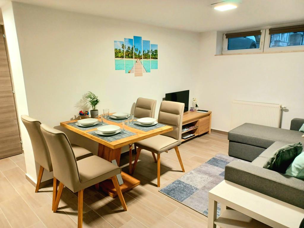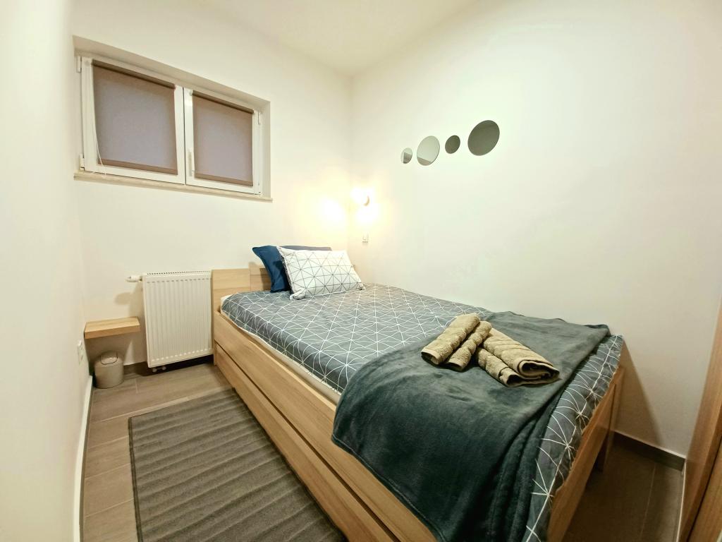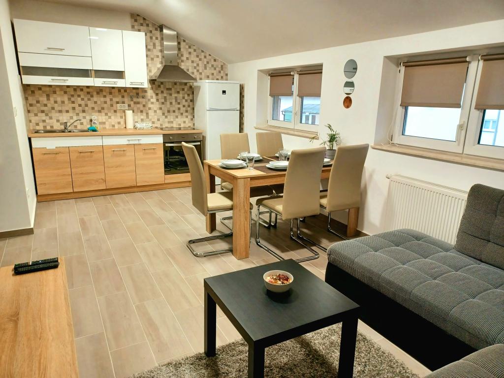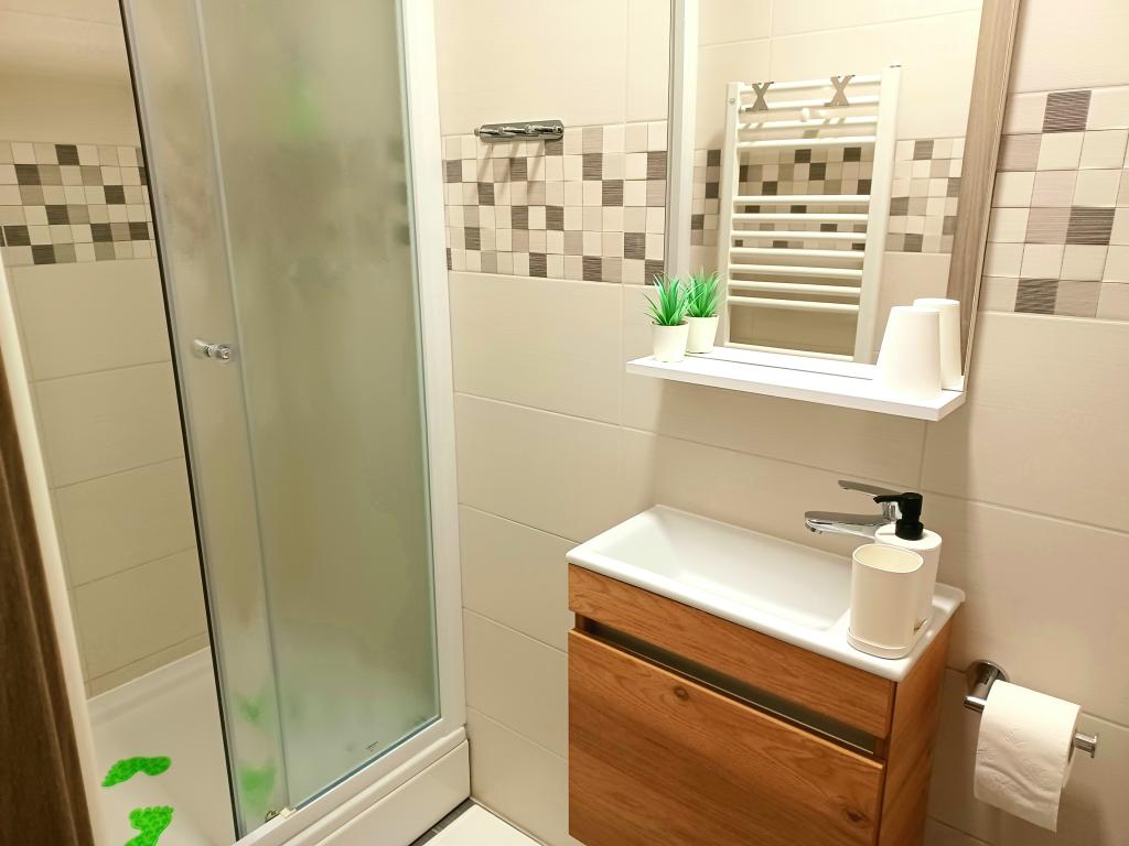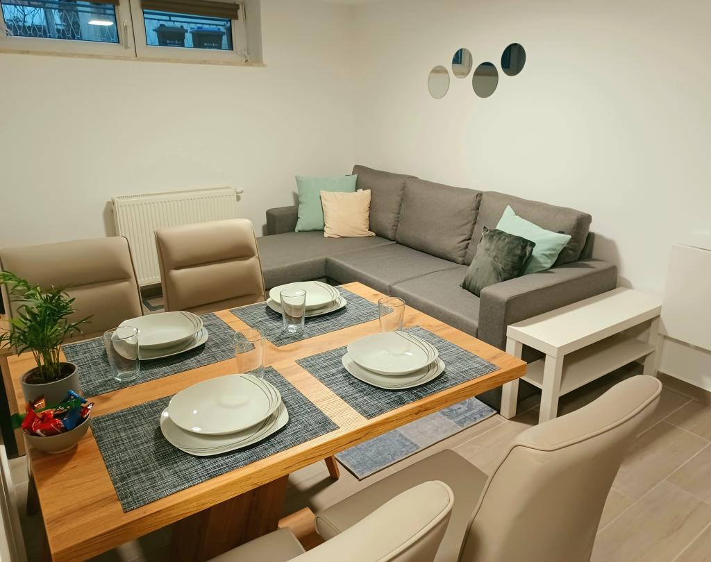 The facility consists of 6 accommodation units, accommodating up to 11 people. Each accommodation unit has its own kitchen and bathroom. The apartments are located in a quiet village, in a dead end street with a pedestrian exit to the main road (50 m). Excellent transport connections, close to restaurants (300 m) and shops (100 m). Distance from the city center approximately 20 minutes by car, bicycle or public transport. Excellent position of the apartments for guests who come for health reasons due to the proximity of several hospitals and clinics.
