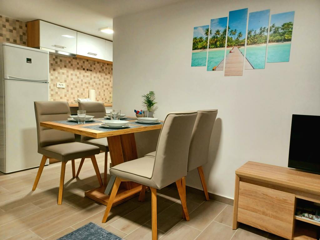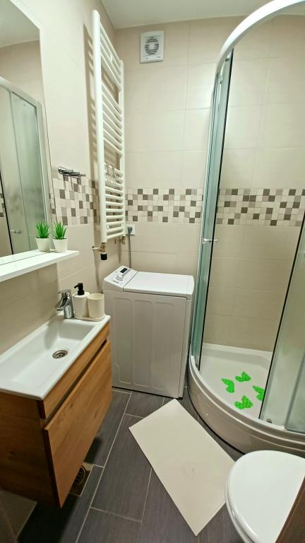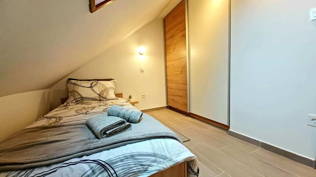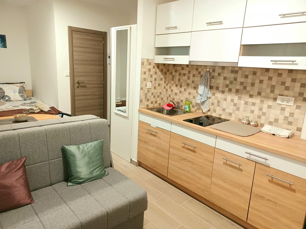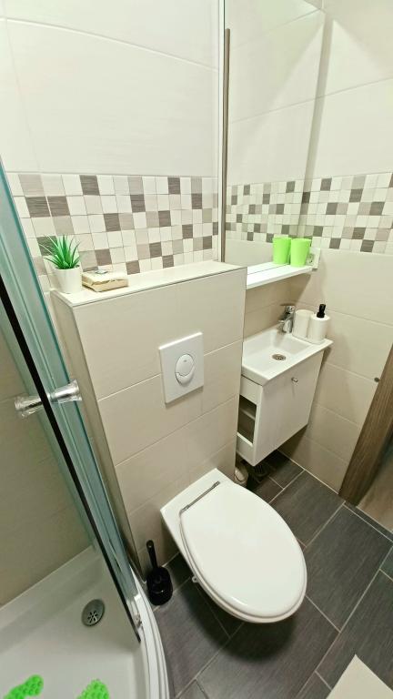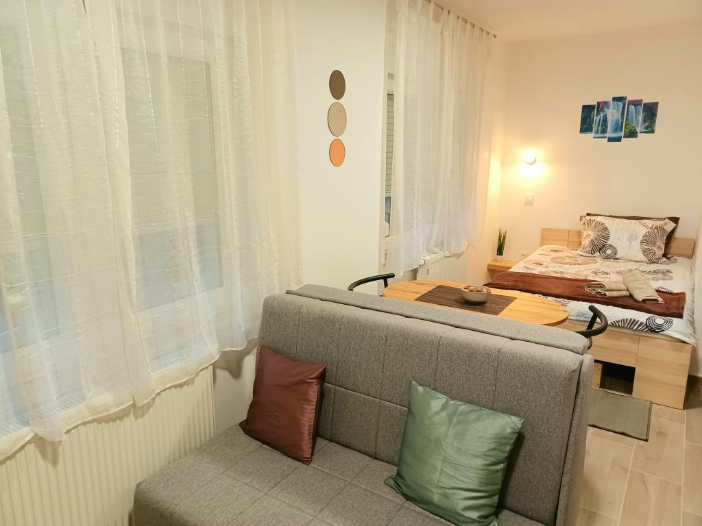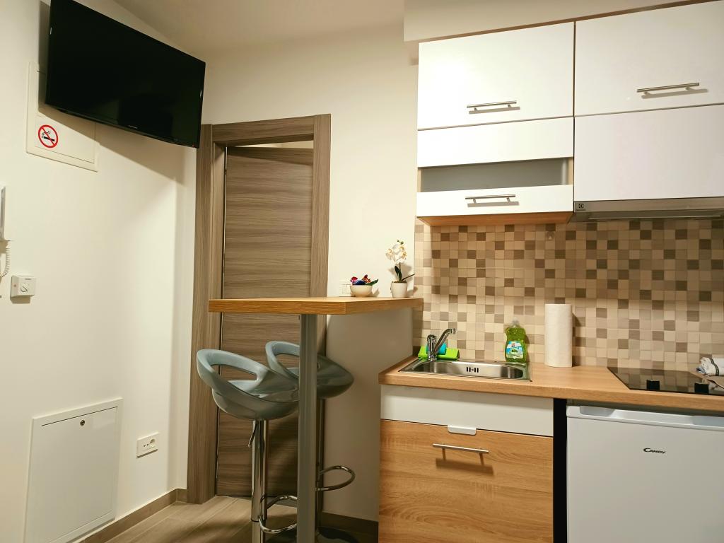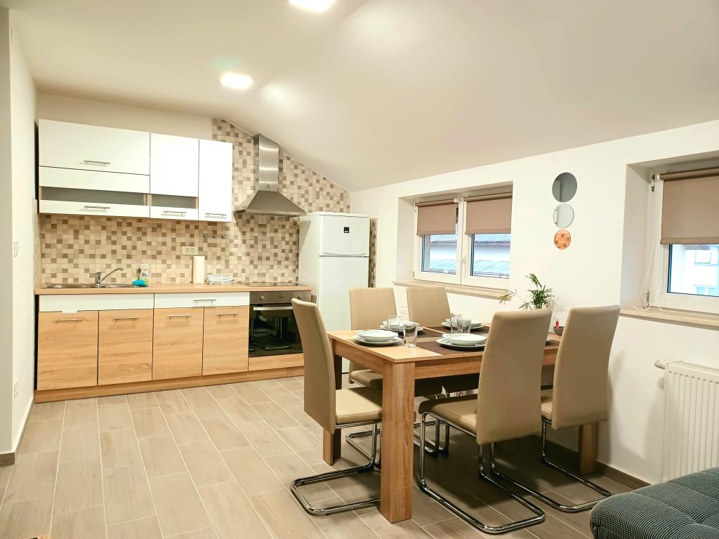 The facility consists of 6 accommodation units, accommodating up to 11 people. Each accommodation unit has its own kitchen and bathroom. The apartments are located in a quiet village, in a dead end street with a pedestrian exit to the main road (50 m). Excellent transport connections, close to restaurants (300 m) and shops (100 m). Distance from the city center approximately 20 minutes by car, bicycle or public transport. Excellent position of the apartments for guests who come for health reasons due to the proximity of several hospitals and clinics.