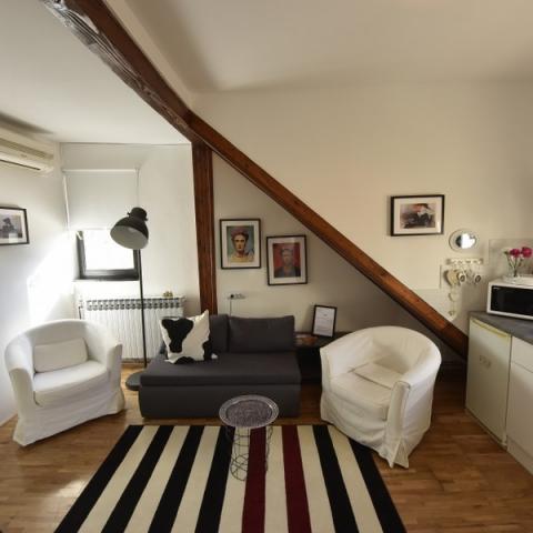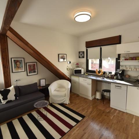 The apartments are located in a courtyard building in the center of Zagreb in a perfect location. New, modern and fully equipped. Apartments have a separate bedroom with a double bed 140x200, and a pull-out bed for 2 people in the living room. They have a fully equipped kitchen (fridge, cooking plate, dishwasher, microwave, toaster, kettle, coffee maker, salt, coffee, tea, ...), dining room, living room and bathroom with towels and hair dryer. One of the apartments has a washing machine. Each apartment has a LED satellite TV, free WIFI, central heating. air conditioner, iron ... They are located to each other making them ideal for renting families with a large number of members and so on. In the immediate vicinity there are most cultural monuments and sights of the city of Zagreb. Close to the railway and bus station. HNK distant 250 m, Jelačić square 600 m, Botanical garden 250 m, Upper town 300 m ... Bizina shop 50 m.