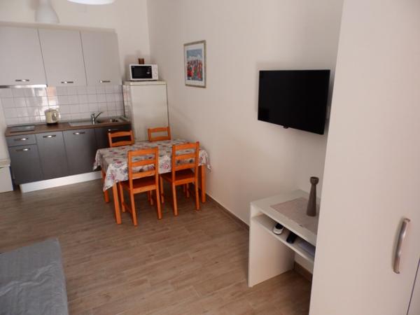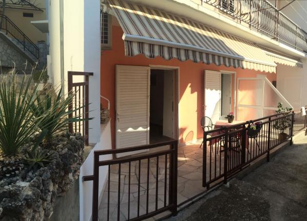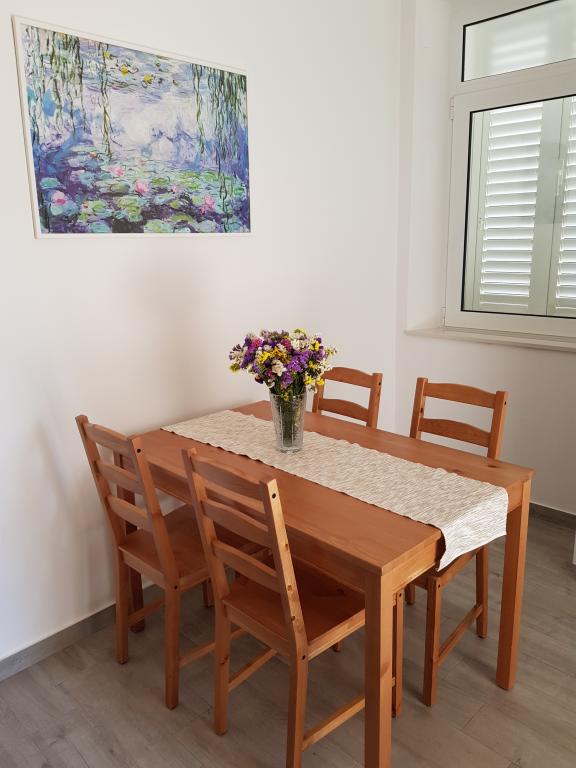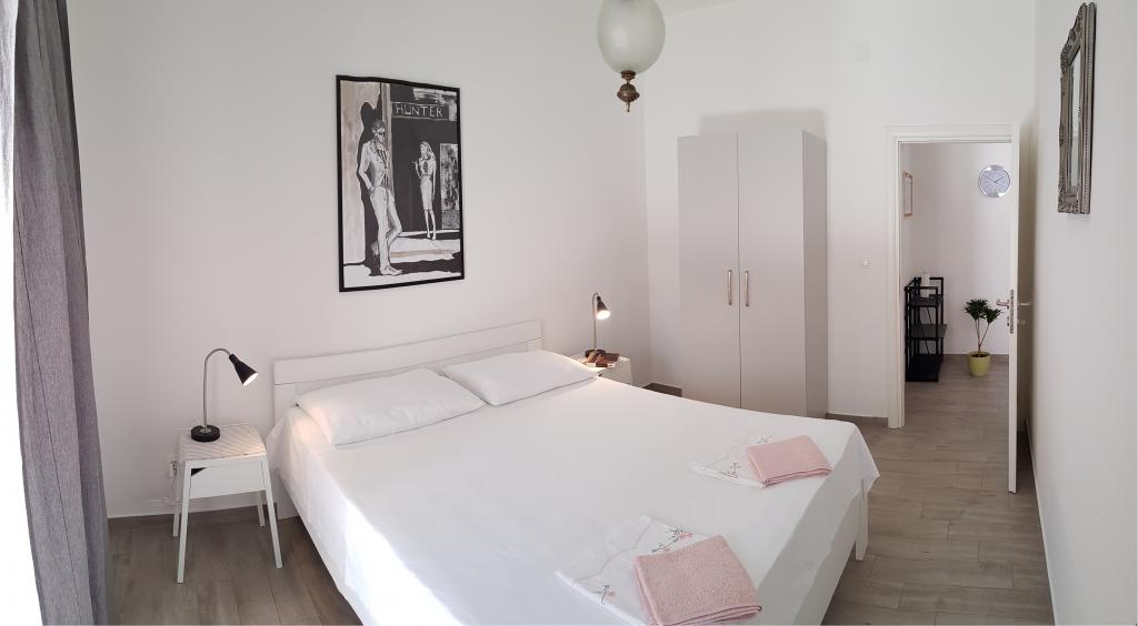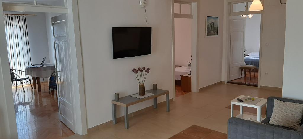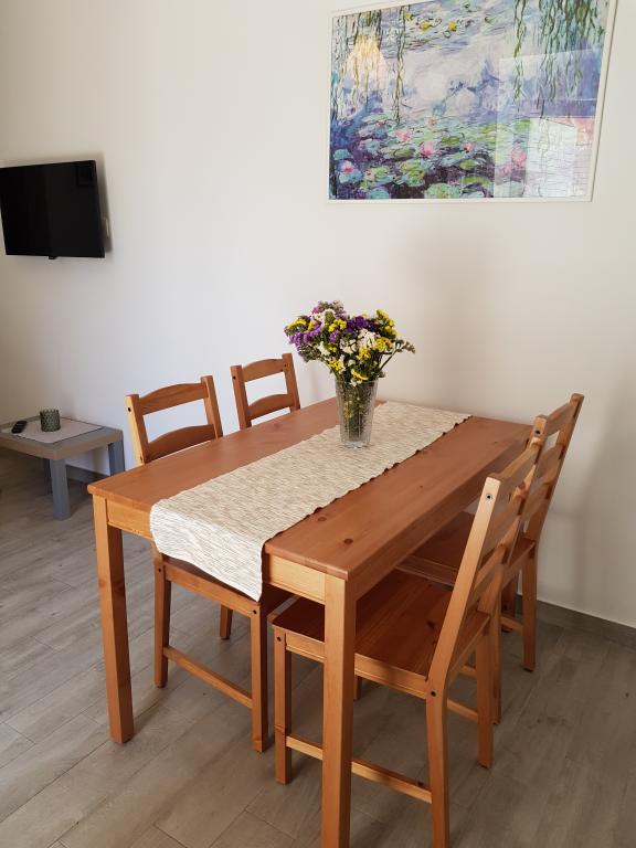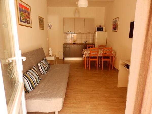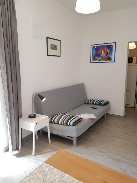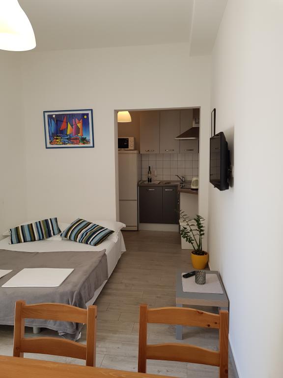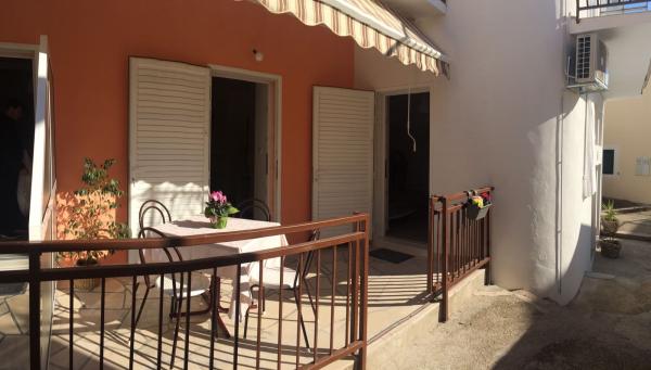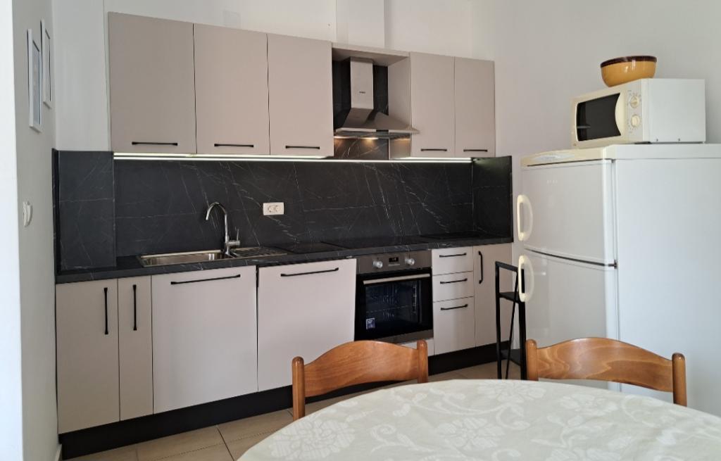 Apartment A2 2 is located on the ground floor of a family house. It consists of a room with a bed (160x200cm), a living room with a sofa (160x200cm), a kitchen, a bathroom and a terrace. Apartment A2 3 is located on the ground floor of a family house. It consists of a room with a bed (160x200cm) and a bed (90x200cm), a living room with a sofa (160x200cm), a kitchen, a bathroom and a terrace. The apartments are completely renovated. Access to the terrace is easy for strollers and bicycles. (only three stairs). The street is quiet and only for pedestrians. Apartment A-10 1 (A-8 3) is located on the first floor. It consists of one four-bed room, two three-bed rooms, two kitchens, a large hall, three bathrooms, three balconies and a terrace at the entrance, 40 m from the beach. The entrance is separate from the pedestrian street. Both apartments have secured parking spaces and flat internet.