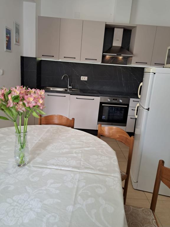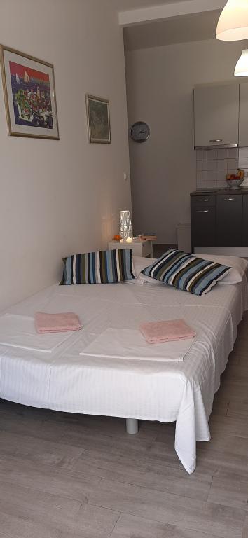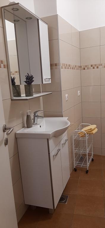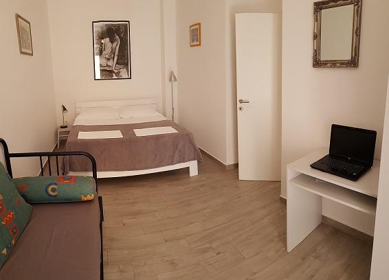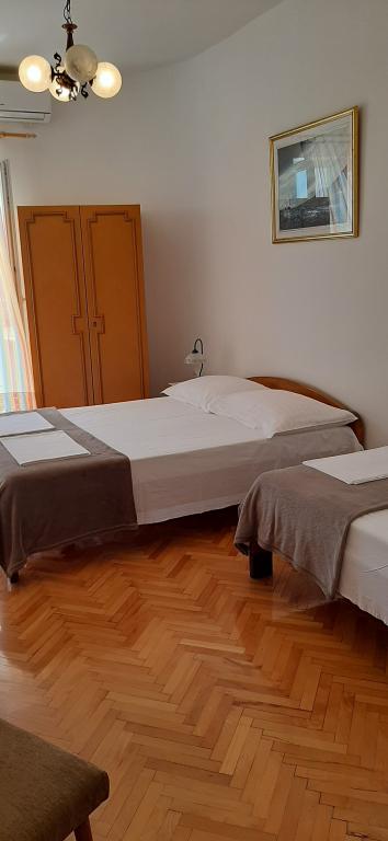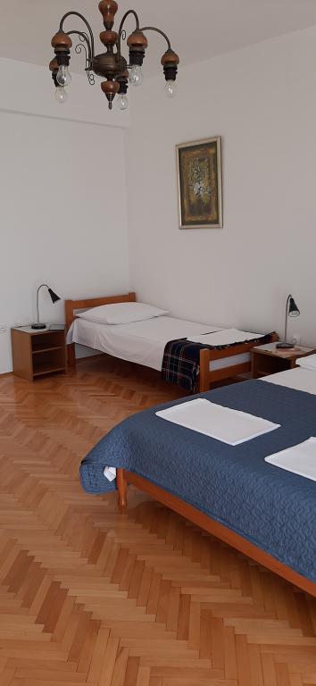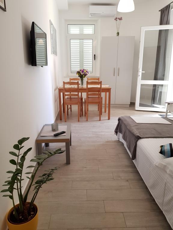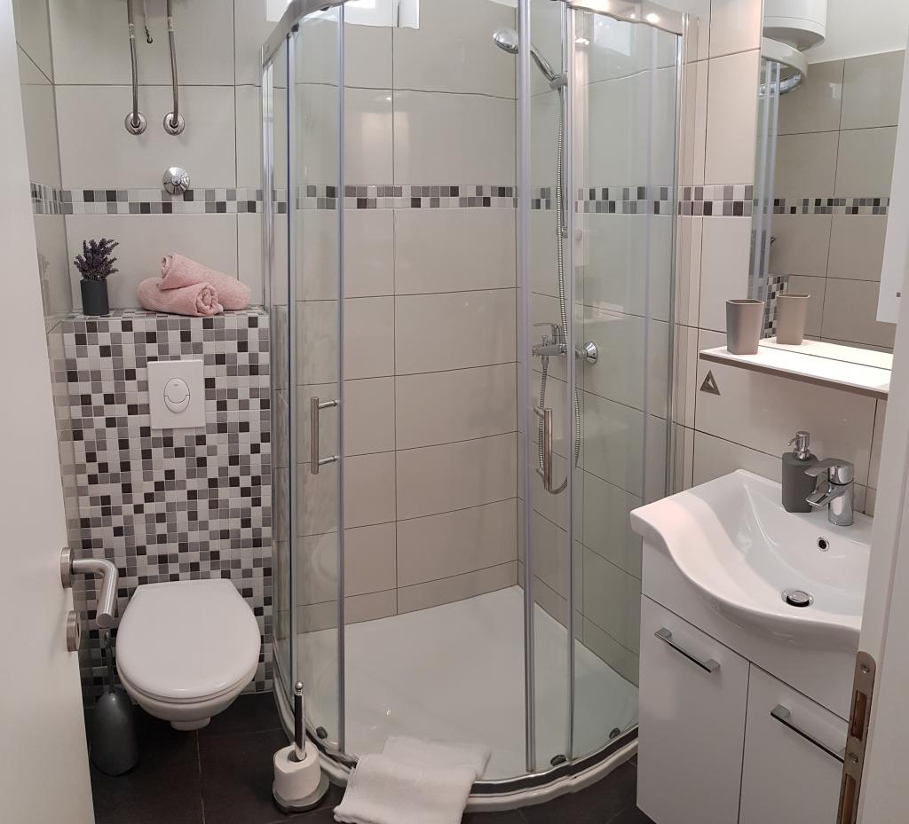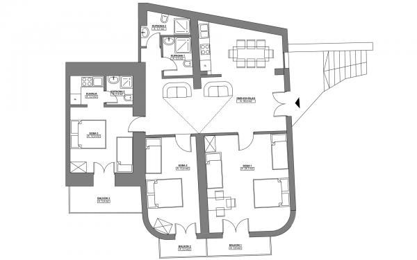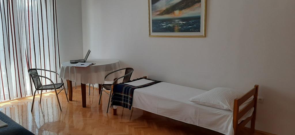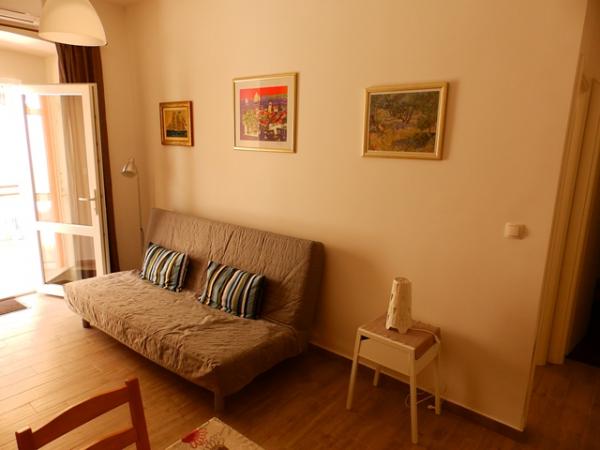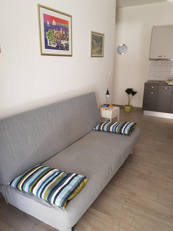 Apartment A2 2 is located on the ground floor of a family house. It consists of a room with a bed (160x200cm), a living room with a sofa (160x200cm), a kitchen, a bathroom and a terrace. Apartment A2 3 is located on the ground floor of a family house. It consists of a room with a bed (160x200cm) and a bed (90x200cm), a living room with a sofa (160x200cm), a kitchen, a bathroom and a terrace. The apartments are completely renovated. Access to the terrace is easy for strollers and bicycles. (only three stairs). The street is quiet and only for pedestrians. Apartment A-10 1 (A-8 3) is located on the first floor. It consists of one four-bed room, two three-bed rooms, two kitchens, a large hall, three bathrooms, three balconies and a terrace at the entrance, 40 m from the beach. The entrance is separate from the pedestrian street. Both apartments have secured parking spaces and flat internet.