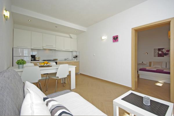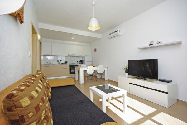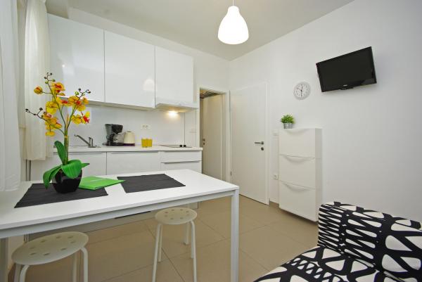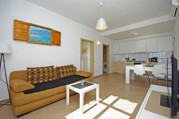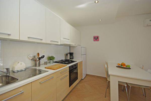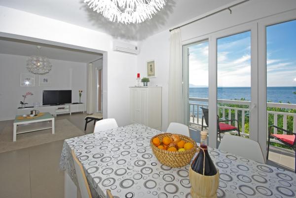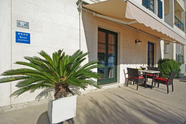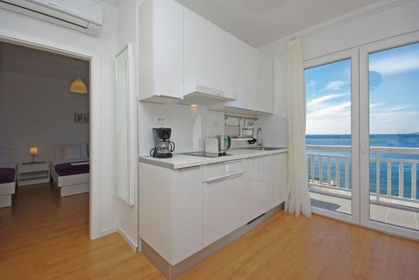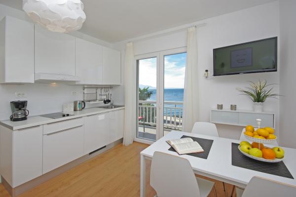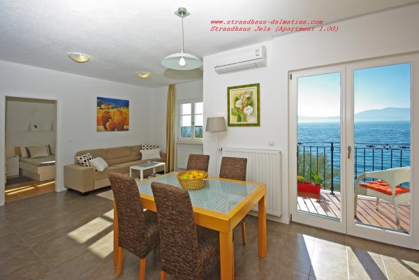 Apartments in strandhaus-dalmatien are located in a great location, only 5 meters from the sea and the beach. Completely and modernly equipped in the first row to the sea and in a quiet environment. All apartments have a beautiful sea view, and there are 3 restaurants nearby. You can see more pictures on our personal page. Type in google: strandhaus-dalmatien and you will find our personal website. The facility is located 5 minutes walk to the center. Secured parking. We look forward to your inquiry!