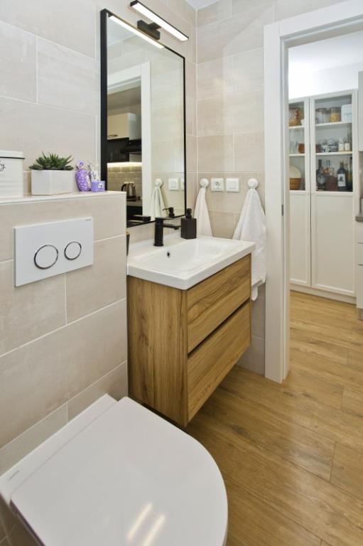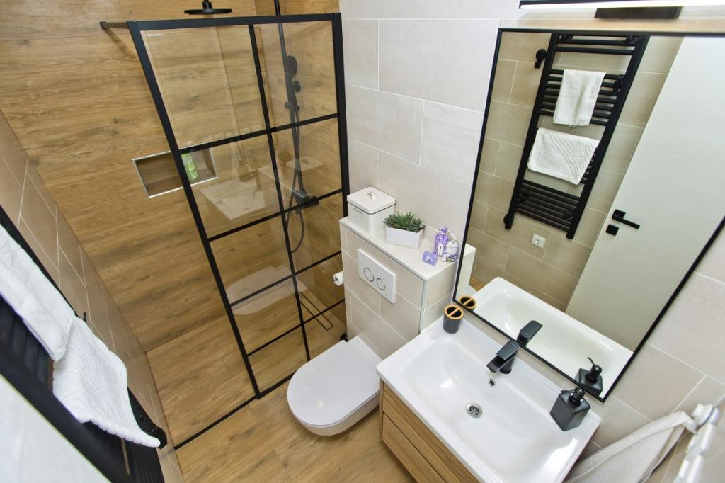 The house consists of an apartment of 30 m2 and a yard of 20 m2. The apartment consists of a bedroom, bathroom, living room with kitchen and a small storage room. The room has a beautiful view and has a double bed under which there is a luggage storage box of 160x200 cm. There is also a large wardrobe with sliding doors, two bedside tables with lamps and air conditioning. The bathroom has a shower, radiator, fan, sink and toilet. The living room with a window and the kitchen are connected. The living room has air conditioning, a sofa, TV, kitchen table with chairs. The kitchen consists of an oven, hob, dishwasher, refrigerator, microwave, water heater and toaster. In the small storage room there is a washing machine, boiler and shoe rack. The yard is intended for socializing and relaxing and there is a sun lounger, parasol, chairs and a yard set. This is an apartment located on the first floor of the family house and in front of it is a large yard.