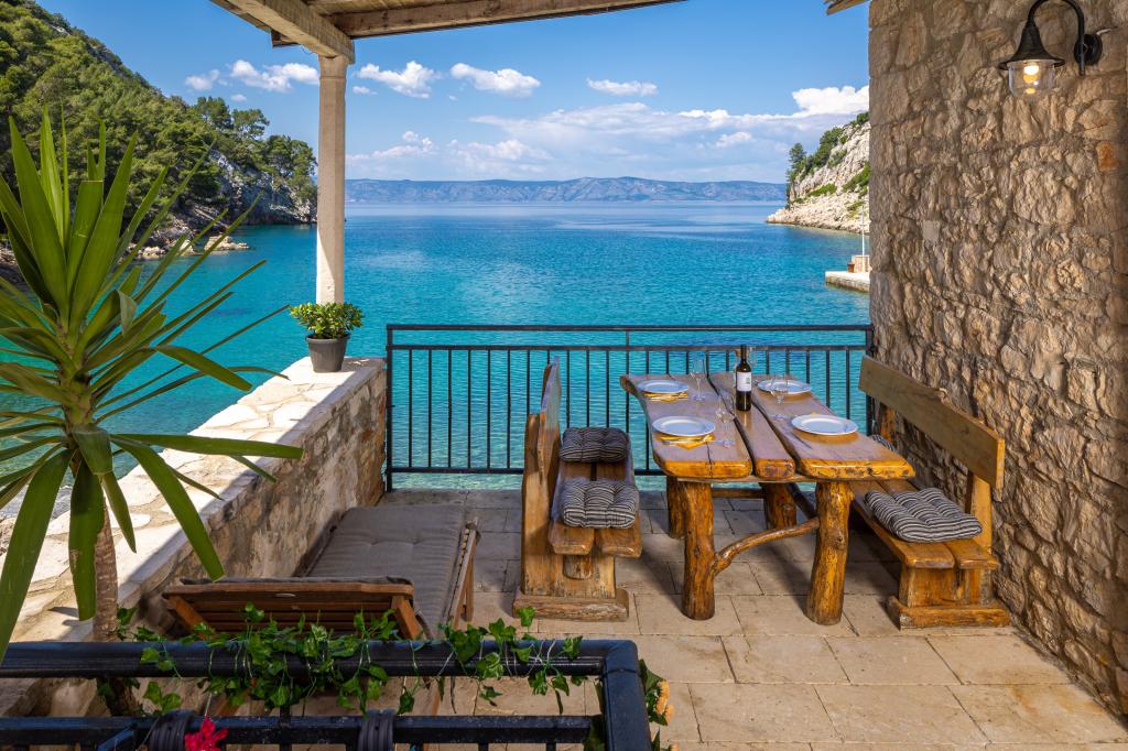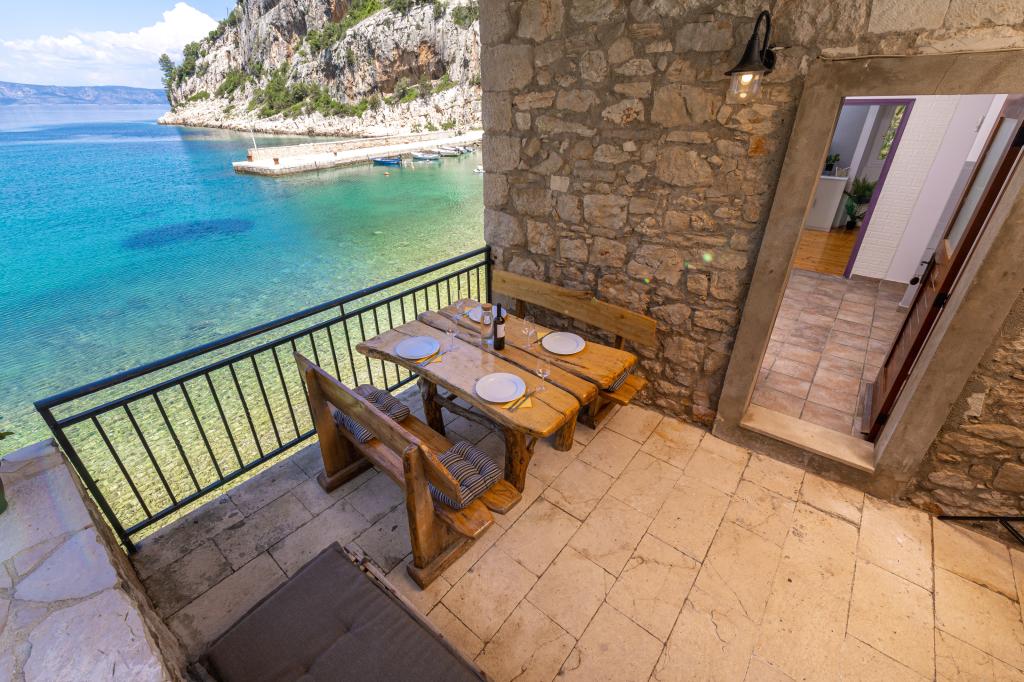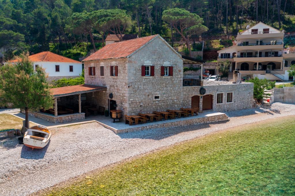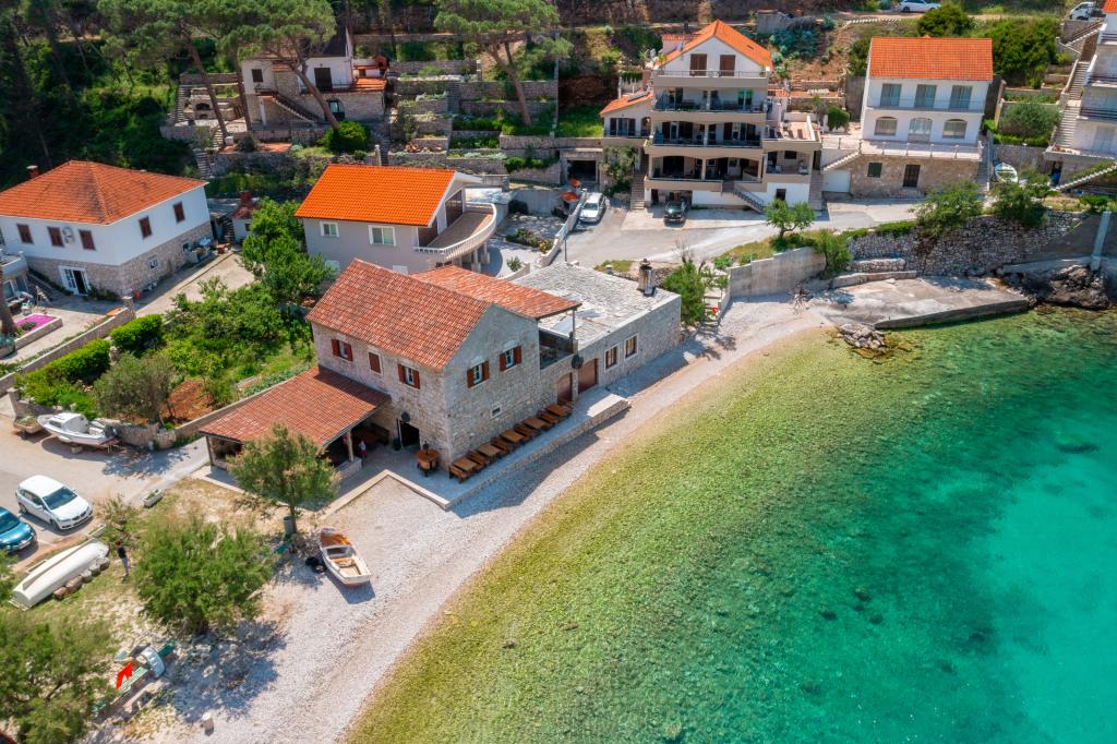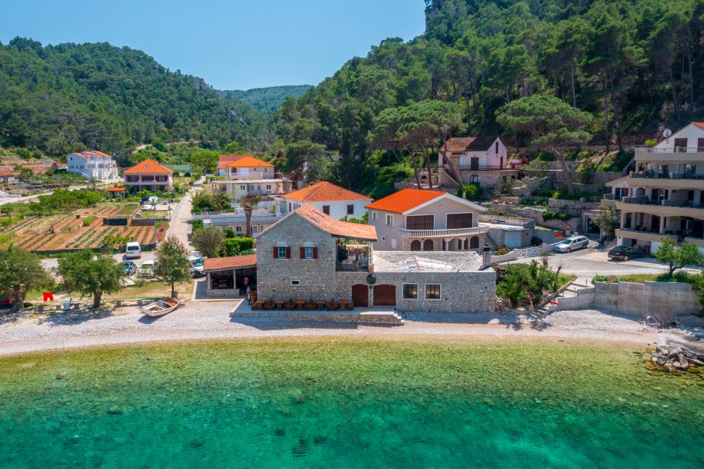 Completely furnished apartment in a quiet bay on the north side of the island of Hvar. The apartment contains rooms with double beds, kitchen equipped with all necessary appliances and utensils, bathroom with shower, terrace with amazing sea views. Towels and bed linen are included in the price. The beach is located next to the apartment and is extremely suitable for children. In the bay of Vela Stiniva you will enjoy the crystal clear sea, the smell of the pine forest and the sun that is there all day in the summer months. Vela Stiniva Bay is 20 km away from Jelsa. In the bay is one of the two climbing areas on the island of Hvar. The house in which the apartment is located is located right by the sea as well as a restaurant where you can enjoy Dalmatian food and local wine.