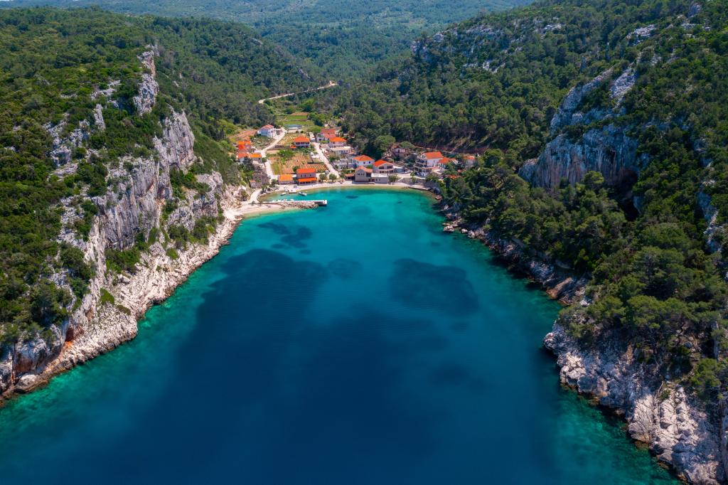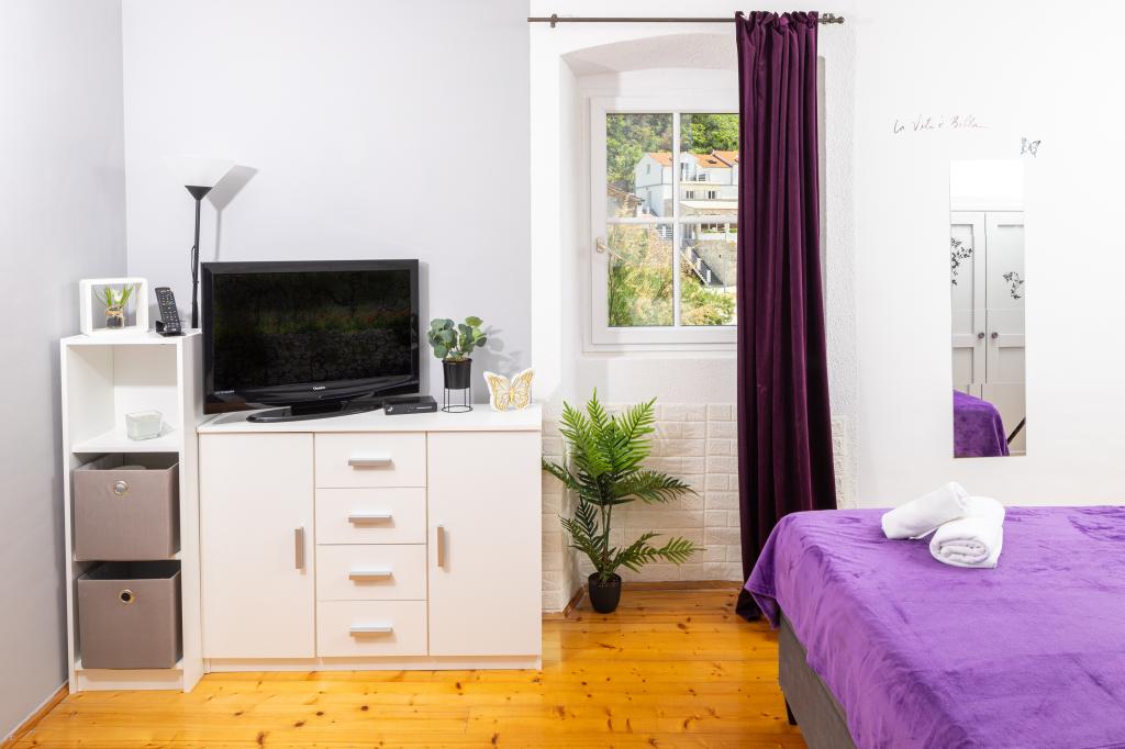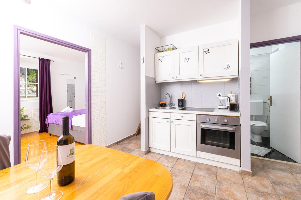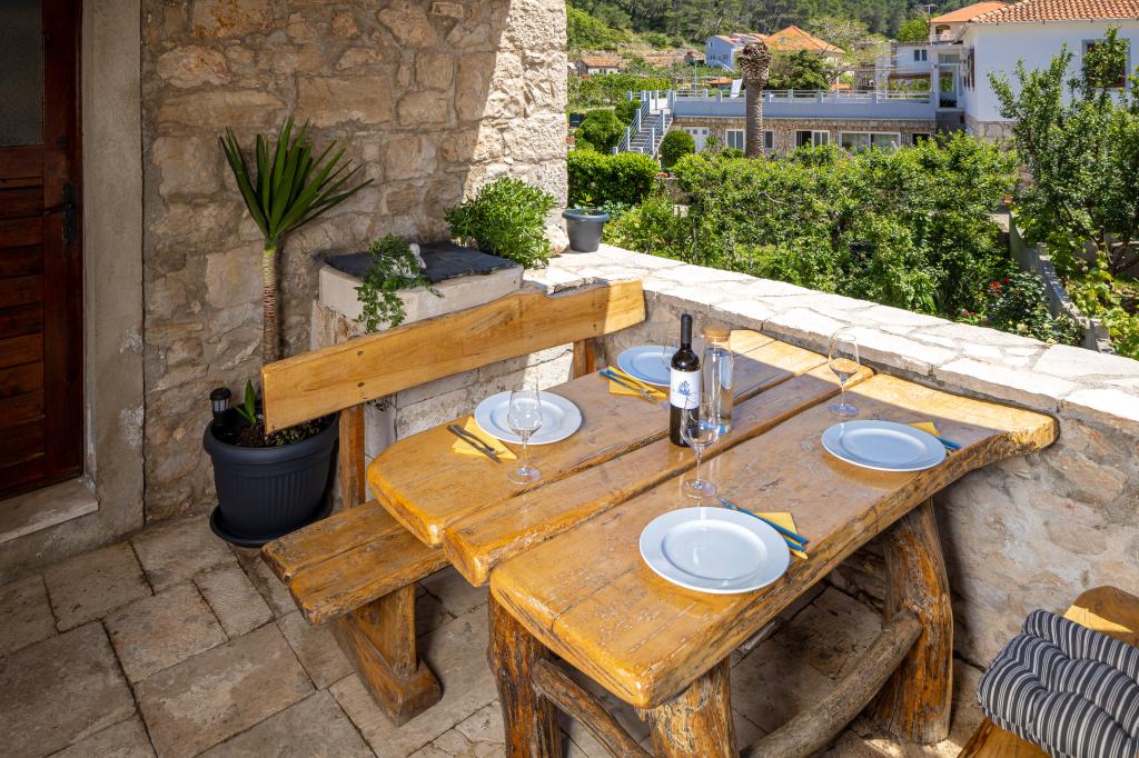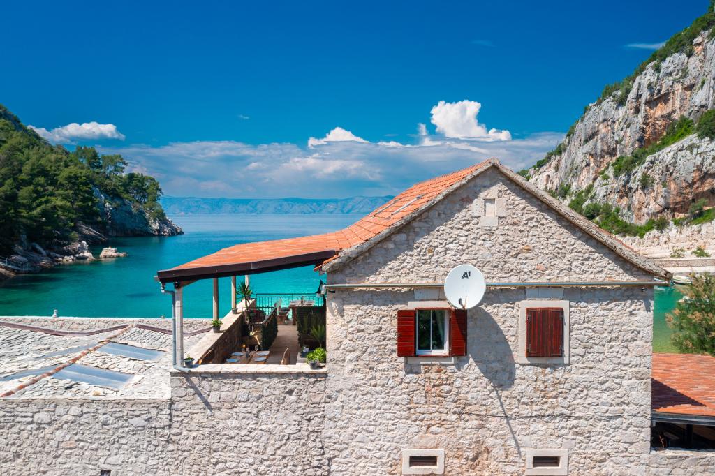 Completely furnished apartment in a quiet bay on the north side of the island of Hvar. The apartment contains rooms with double beds, kitchen equipped with all necessary appliances and utensils, bathroom with shower, terrace with amazing sea views. Towels and bed linen are included in the price. The beach is located next to the apartment and is extremely suitable for children. In the bay of Vela Stiniva you will enjoy the crystal clear sea, the smell of the pine forest and the sun that is there all day in the summer months. Vela Stiniva Bay is 20 km away from Jelsa. In the bay is one of the two climbing areas on the island of Hvar. The house in which the apartment is located is located right by the sea as well as a restaurant where you can enjoy Dalmatian food and local wine.