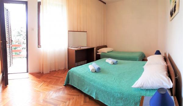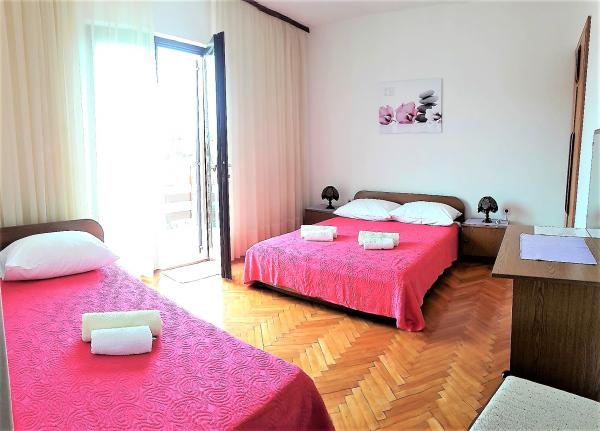 House Irena is an apartment for ten people - on the first floor of the house there are rooms (two triple bedrooms with balconies, two double rooms and two bathrooms), in the corridor there is an air conditioner (on the first floor). On the ground floor there is a kitchen, a terrace and a barbecue (the owners of the house are on the ground floor - a common corridor). The house is located right next to the coast, 10 meters from the sandy beach, has an outdoor shower, enough parking space, Wi-Fi and TV (SAT).