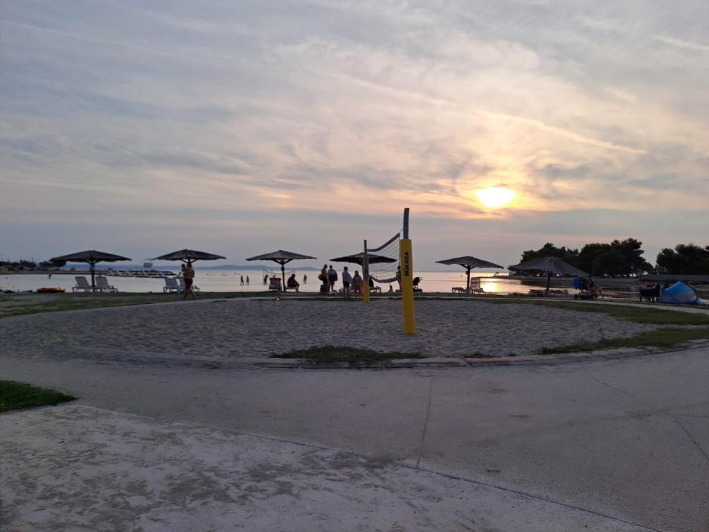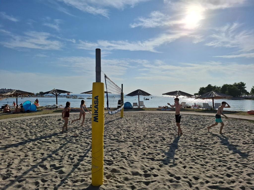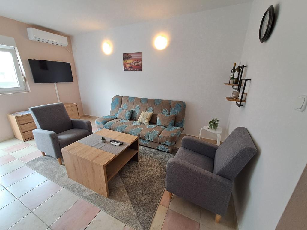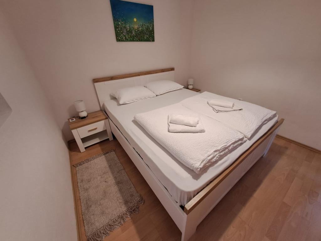 It is located in the quiet town of Zaton (Zadar). The distance from the sea is about 250 meters, the same distance to the first sandy beach. The apartment has an area of 46 m2 and is fully equipped for a pleasant family vacation. It consists of two bedrooms, living room, kitchen and bathroom. A separate storage room is available. The apartment is on the ground floor with two spacious terraces and a secured parking space for two cars. Wi-fi internet, Max TV, air conditioning and barbecue are available.