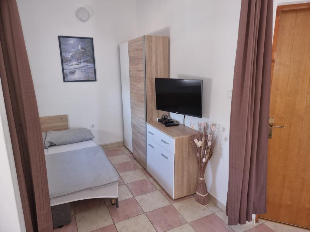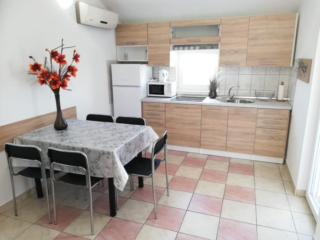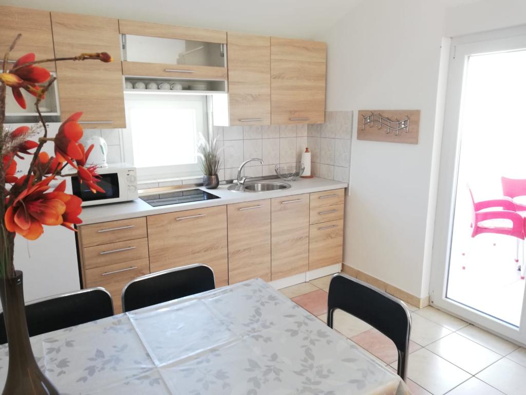 Fully equipped apartment located in the beautiful town of Zaton (Nin), which is surrounded by one of the most beautiful beaches in Croatia. The apartment consists of: kitchen and living room, bathroom with shower cabin and washing machine, corridor, terrace, 1 bedroom and 1 partitionable room with screen. Parking space provided and visible from the balcony of the apartment. Possible use of the barbecue in the yard.