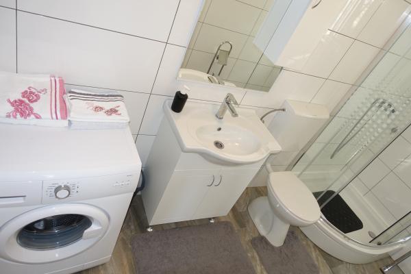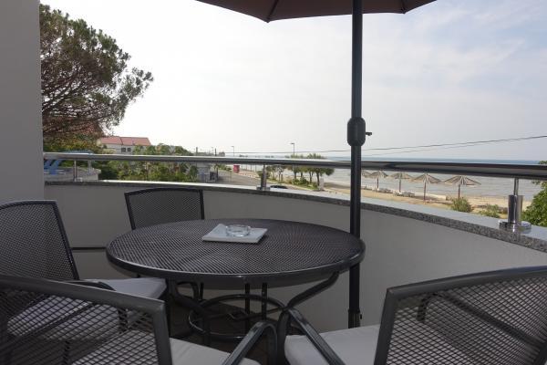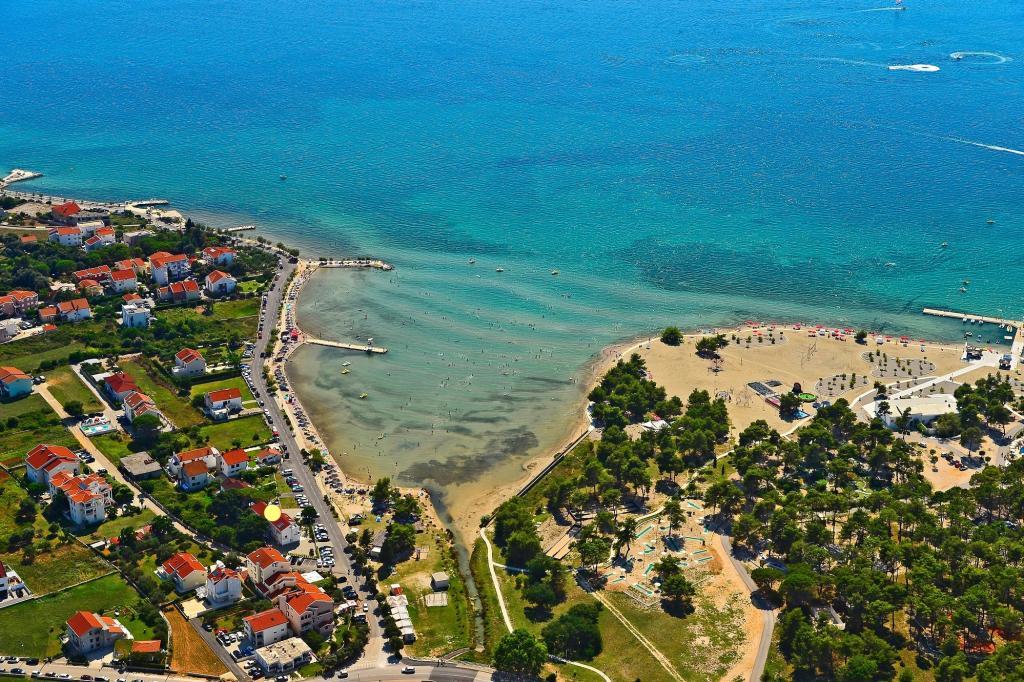 Nearby: - Tourist resort \\Zaton\\ - 60 m - Children's playground - 20 m - Coffee bar - 20 m - Restaurant with half-board meals - 30 m - Bakery - 40 m - Kiosks with beach amenities - 40 m - Outdoor gym - 40 m - Zadar - 12 km - Nin - 1 km The beach has showers, changing rooms and toilets. It is possible to rent deck chairs, umbrellas, pedal boats and other amenities on the beach. Within a radius of 100 km there are national parks: Paklenica, Kornati, Plitvice Lakes, Krka and Northern Velebit.