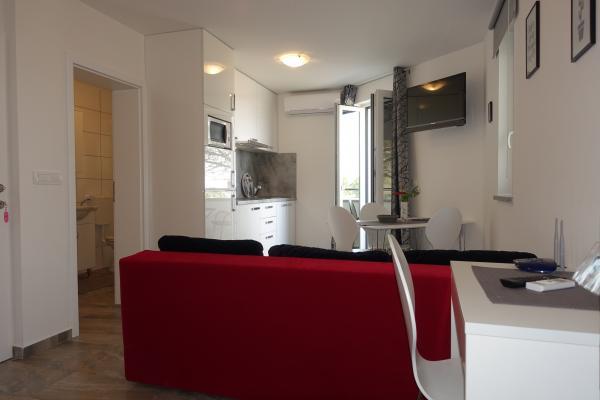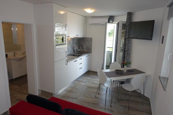 The facilities are located right next to the sea, right on the beach in Zaton. Houses with apartments are located next to each other and all apartments have a view of the sea. Wi-Fi, parking and air conditioning are included in the price.