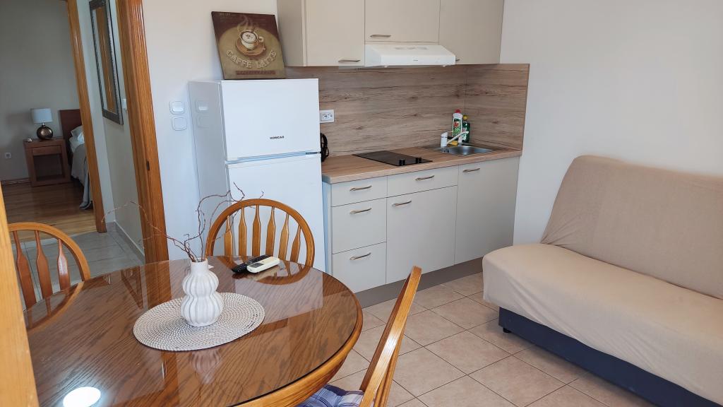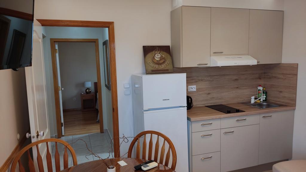 We were accommodated in a 2+1 room. The apartment was clean and fragrant. The sea directly across the road. The view directly to the sea and the sunset... the only thing that was a little minus is the lack of storage space for three people, but it can be managed. And the water was terribly difficult to adjust - either iced or hot, but those are really just little things. The owner was accommodating. Upon request, she also gave us additional towels without extra charge or any other words. .There is also a resort nearby, which offers restaurant stands, etc. in the evening. I really recommend