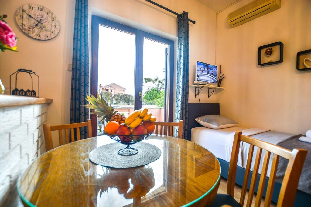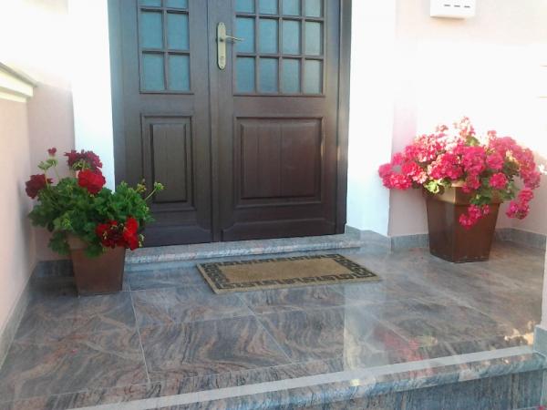 A warm welcome in the apartment. On a pillow of chocolate, flowers on the table. A gift at departure. The owner is very useful, cute. The apartments are very clean and nicely decorated. Garden with lots of fruit trees and flowers, beautifully. More very close, children's playground, cafe and restaurant also. We were very comfortable and holidays are unforgettable. We will come next year. Recommendation of family with children.