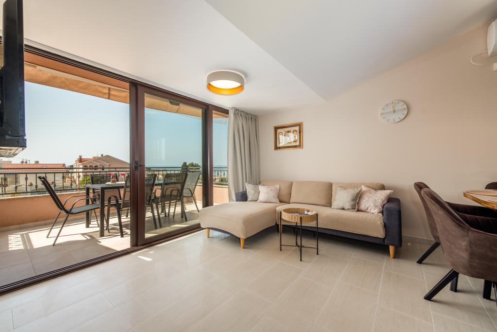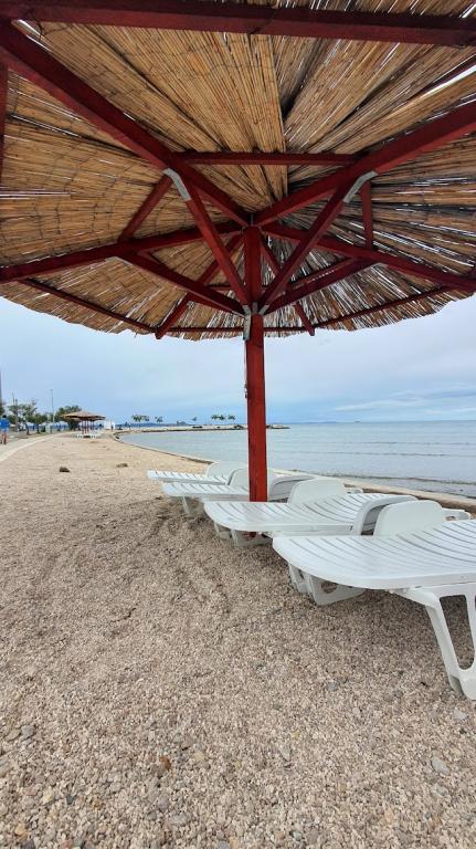 We stayed for a week. The location is wonderful. The apartment is excellent, clean, very well equipped, has two balconies, one of which has a beautiful view of the sea. There are mosquito nets on the windows everywhere. The sea is extremely clean, sandy bottom. The owners are very friendly. Extremely good price for such a well-prepared apartment. I really recommend it!