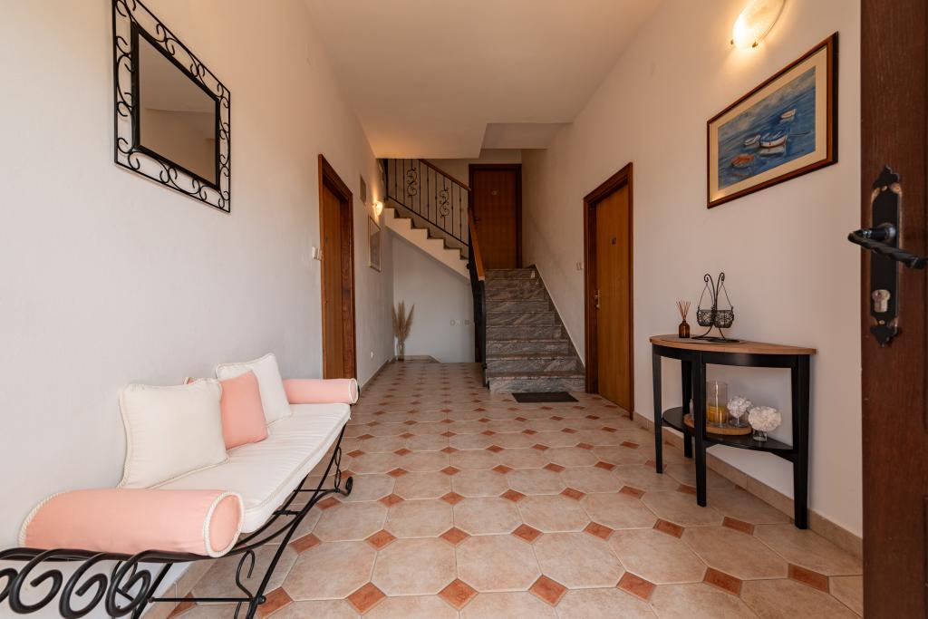It's nice when you are greeted by an extremely clean and smelly apartment. The housekeeper welcomes all praise. Nice and kind assistance when arriving in the apartment. The apartment is beautifully decorated to every detail as well as the whole house. The courtyard is beautiful, full of flowers, fruits and vegetables that we have ourselves. The beach is across the street like a cafe, a bakery, a restaurant. Location is great, close to everything and far from noise. We've already booked for the events because this is our best vacation. All praise, my rating is great!