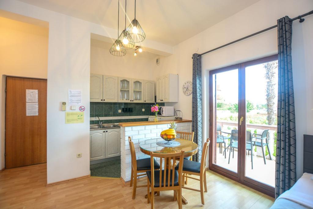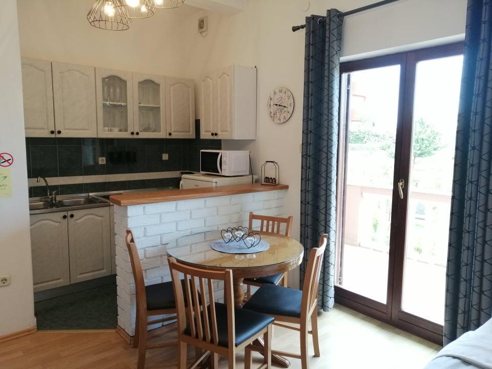 A wonderful quiet place, just the right vacation. We were at the end of September, so that's probably the reason. The apartments are in a wonderful location, surrounded by a real botanical fragrant garden. The sea is extremely close, as well as important facilities such as a bakery, restaurant, pancake bar and training ground. The apartment is tastefully decorated, as is the entire facility. Everything is even more beautiful live. The prices are quite affordable. And very importantly, the hosts are wonderful people, so accommodating and unobtrusive. Mrs. Renata is a real housewife, by all accounts. I wholeheartedly recommend the apartments.