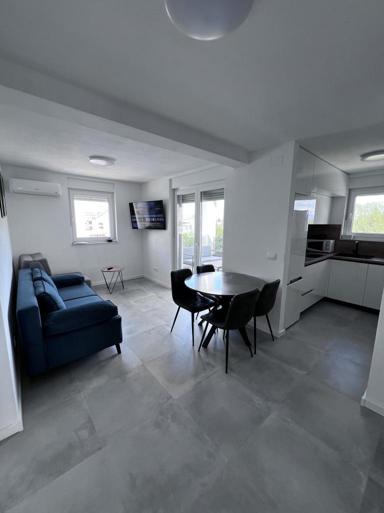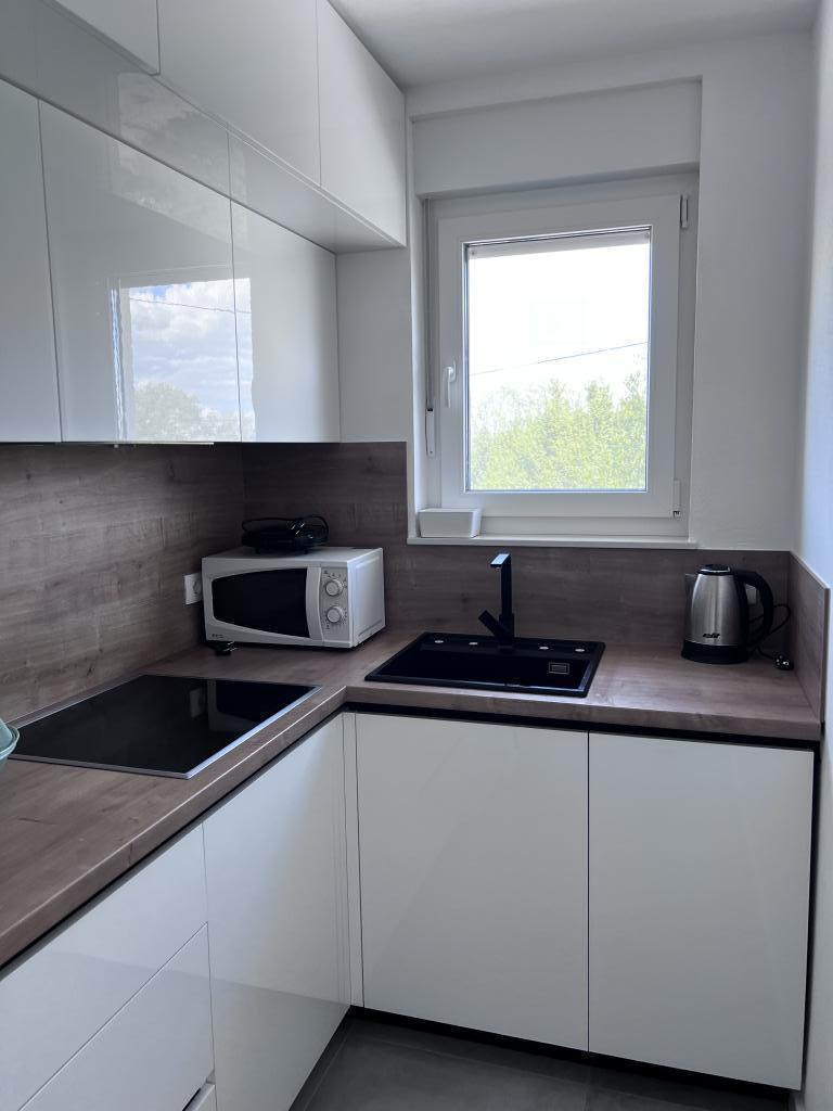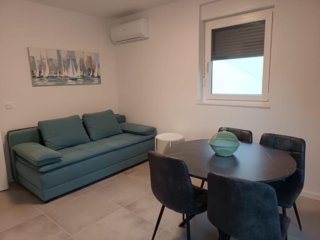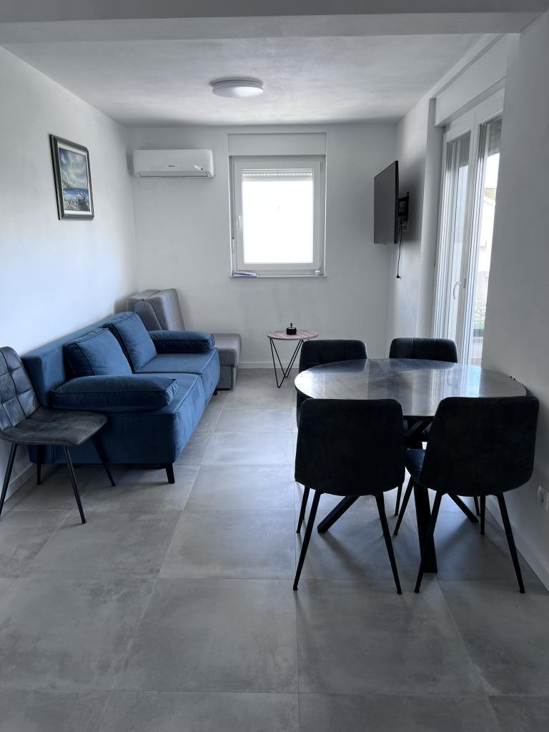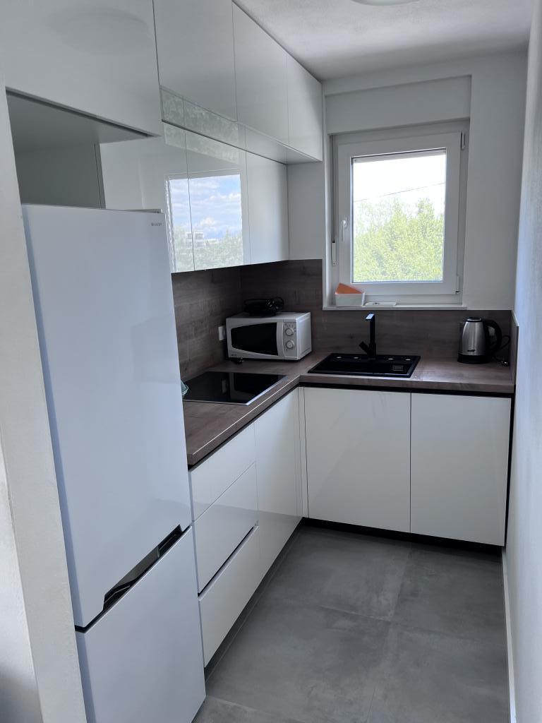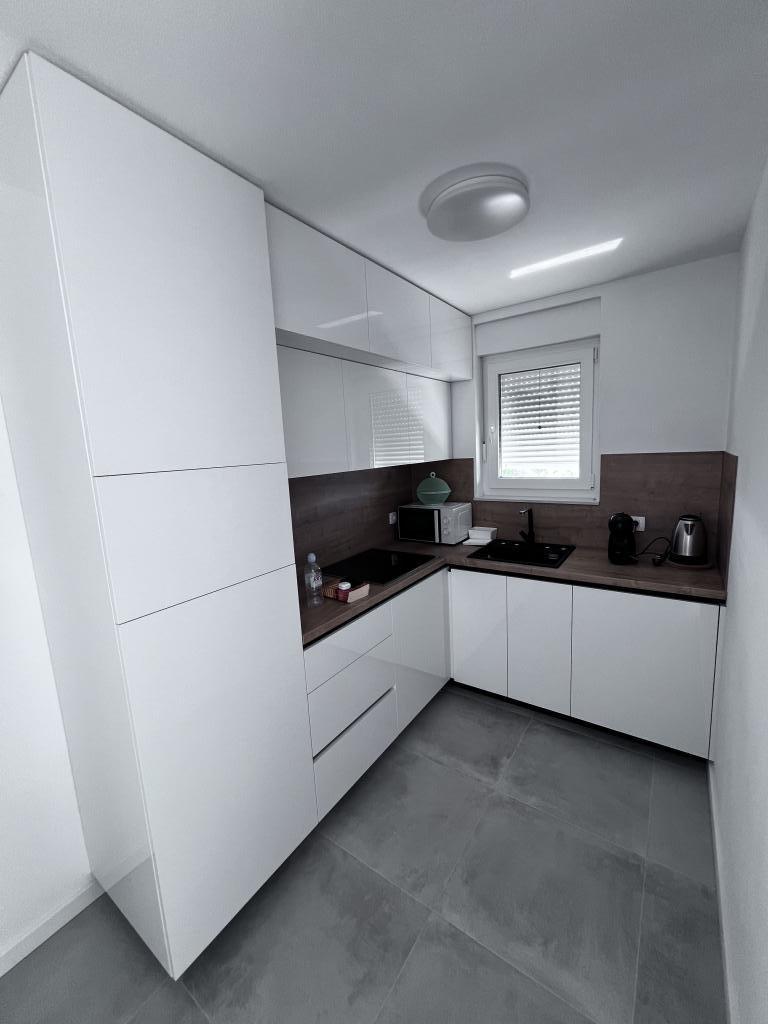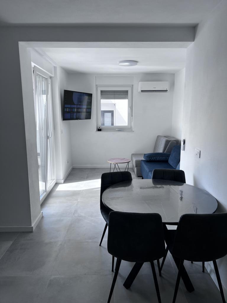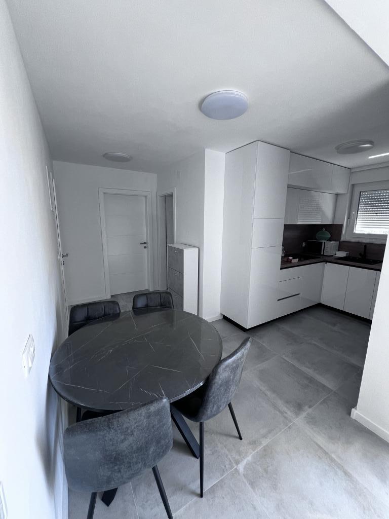 The apartment is new and everything is great. The kitchen has everything you need. In the fridge we were greeted by cold apple juice, beer and water. In the kitchen there was coffee and sweets for adults and children. The owners are very kind and everything you needed, they were there to help. The apartment is very close to the sea. There is also parking. They even have an umbrella for the beach. It is very quiet and very pleasant to sit and enjoy nature.