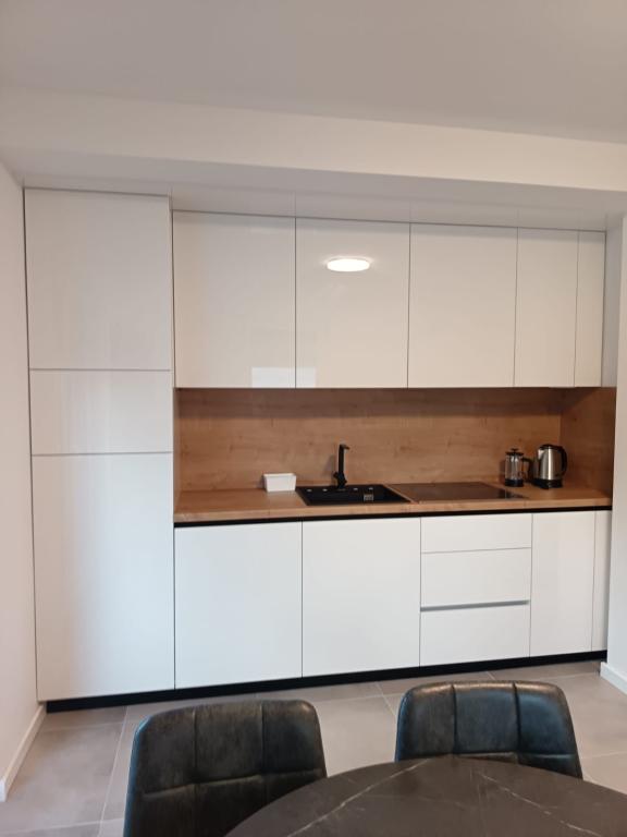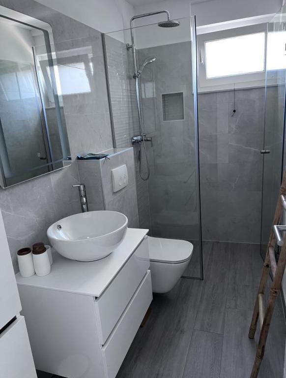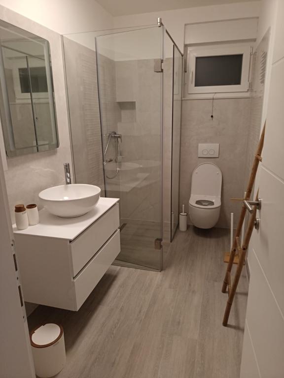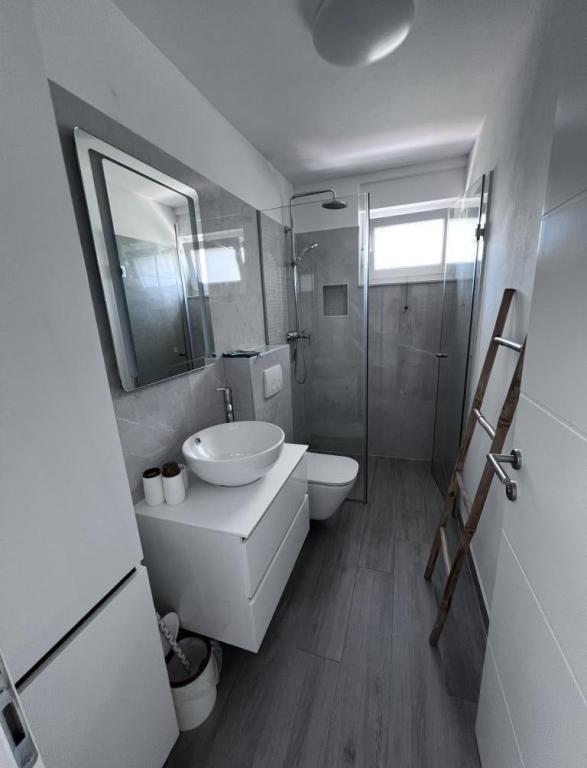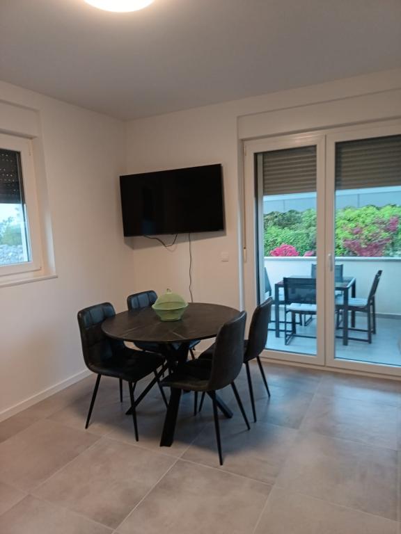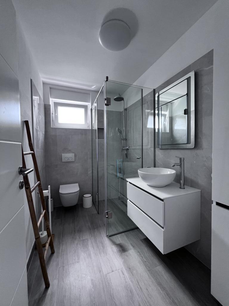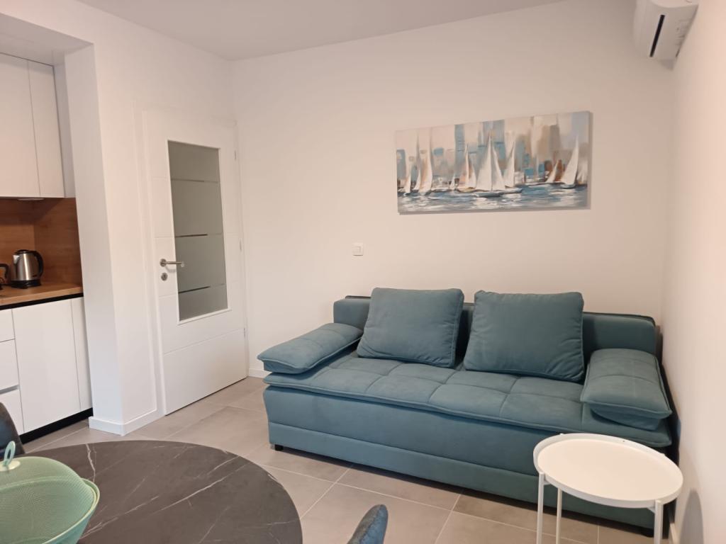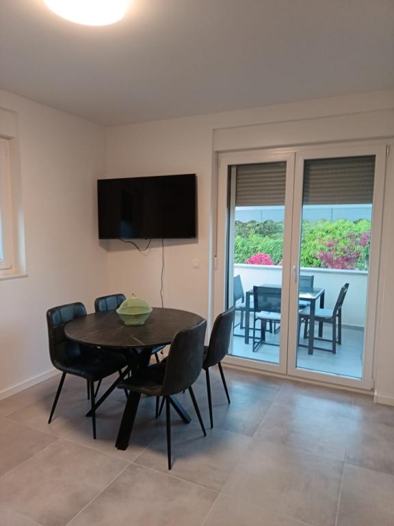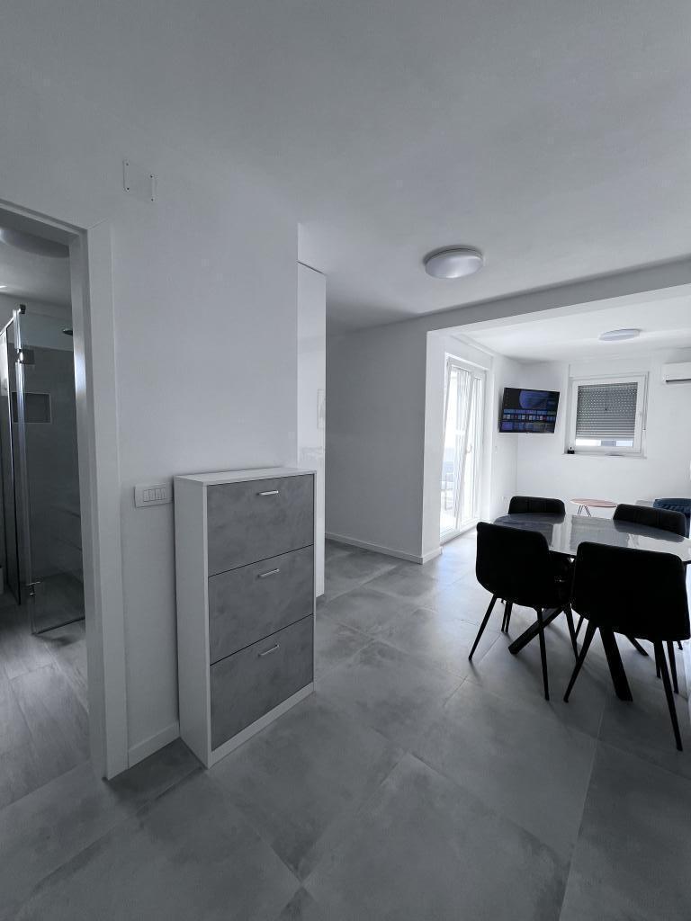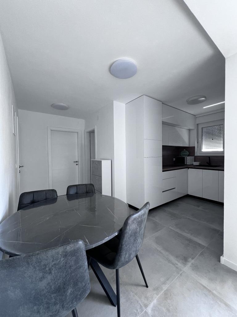The apartment is new and everything is great. The kitchen has everything you need. In the fridge we were greeted by cold apple juice, beer and water. In the kitchen there was coffee and sweets for adults and children. The owners are very kind and everything you needed, they were there to help. The apartment is very close to the sea. There is also parking. They even have an umbrella for the beach. It is very quiet and very pleasant to sit and enjoy nature.