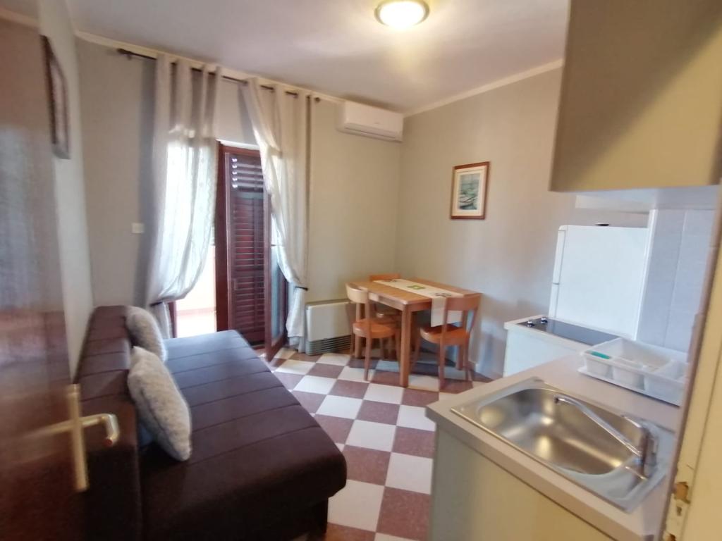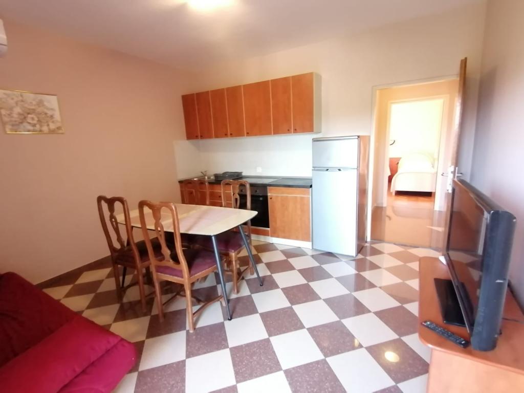Fully equipped apartment, located first row to the sea. Secured parking space, Wi-fi. Grill available. 30 m away from the entrance to Holiday resort Zaton. Within 50 m, sandy beach suitable for children, mini gym, coffee bar, restaurant, bakery, beach volleyball, mini gym, children's playground.