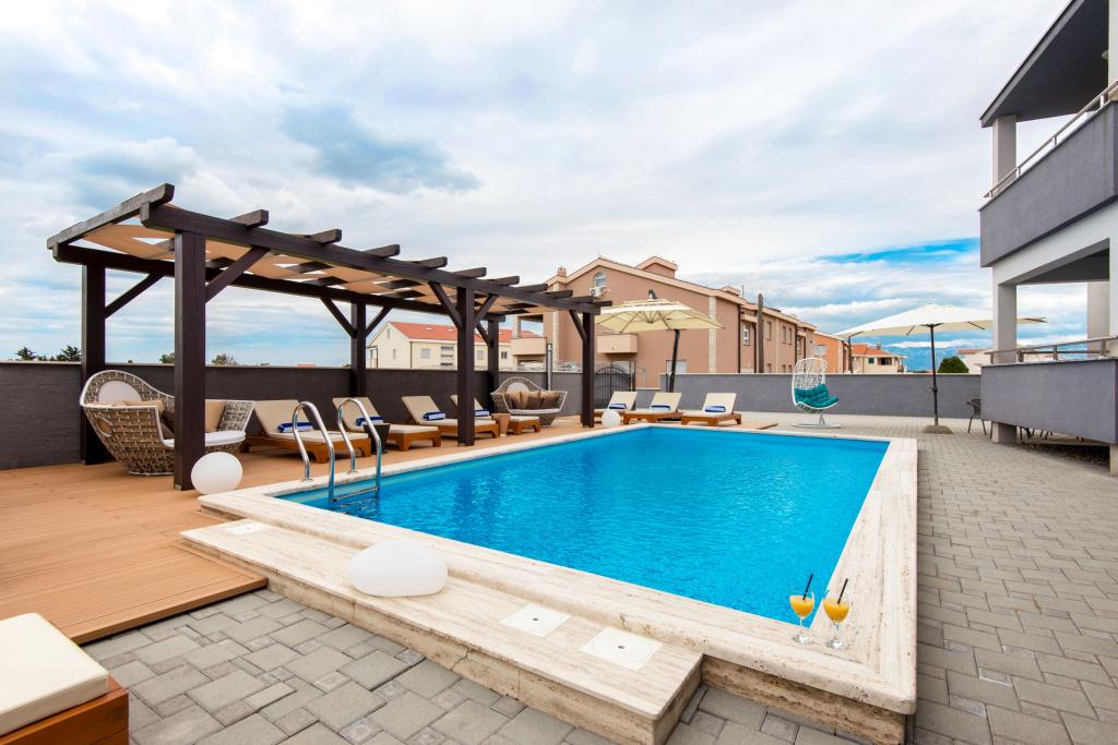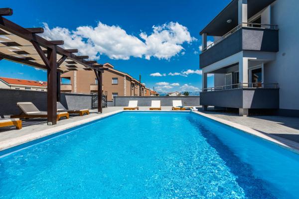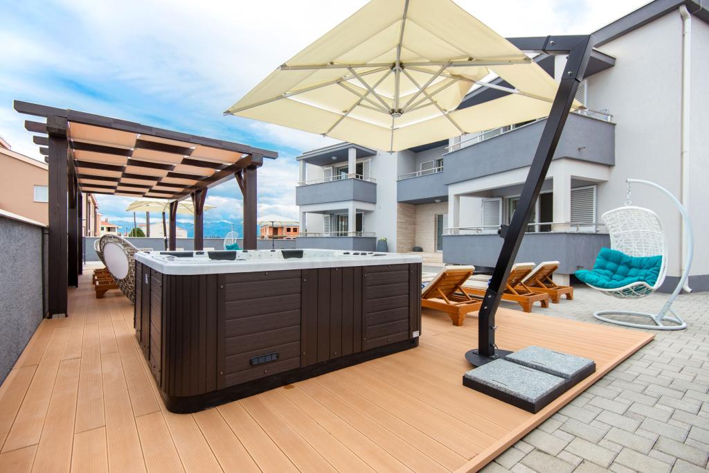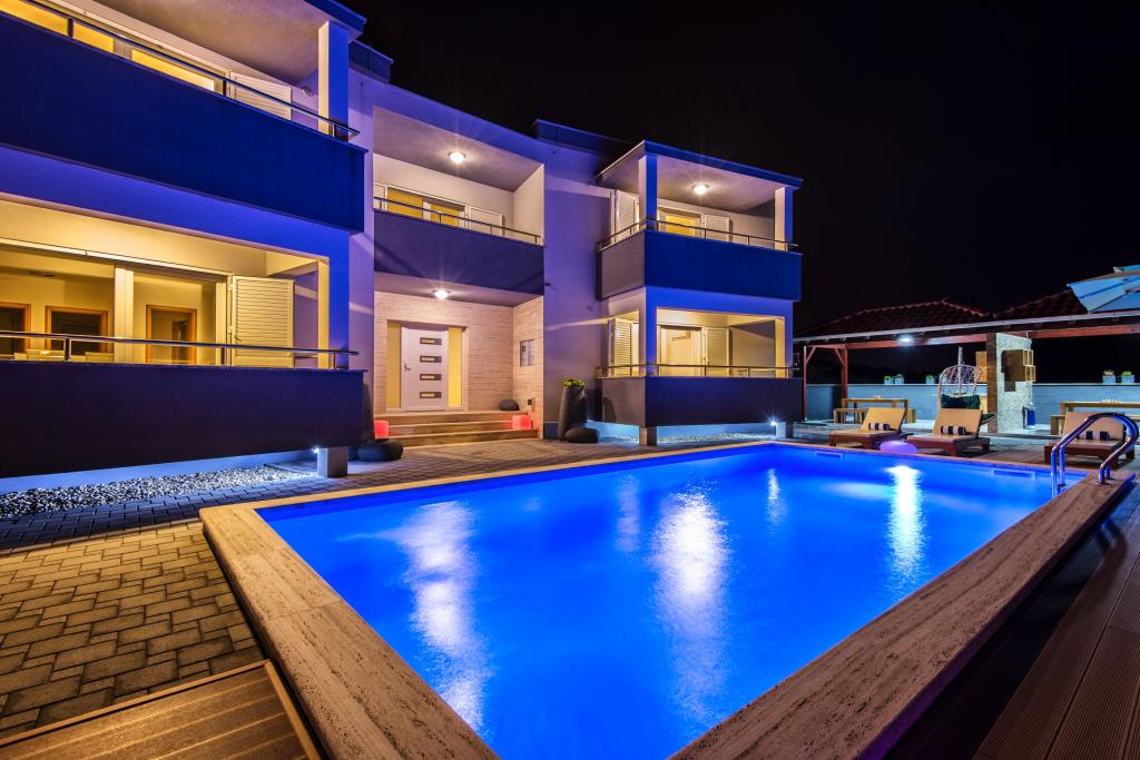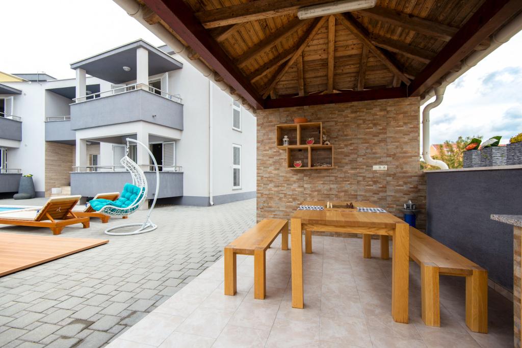 Apartments Villa More - a house with four apartments (max 4 people) and two rooms (each room max 2 people) in Zaton, in the immediate vicinity of the Zaton Tourist Resort. Room Val (ground floor) does not have a balcony, room Sunce (1st floor - has a balcony), the entrance to the balcony is through the hallway, not directly from the room. The property is located a 5-minute walk from the Zaton Tourist Resort and the beach. Villa More has a swimming pool, jacuzzi, fireplace with grill. There is also a washing machine available (shared use). We also offer free bicycles and free parking next to the house.