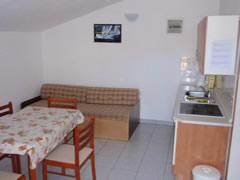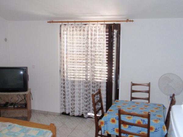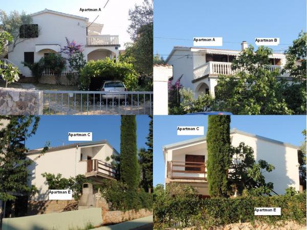 Apartments A and B are located on the first floor, terrace facing the sea and the sun is protected by awnings. The living room has a double bed and kitchen. In a smaller room has a bunk bed suitable for children. The apartment has a bathroom. The apartment is suitable up to 4 people - 2 adults and 2 children. The apartment has air conditioning. Apartment C is located on the first floor, terrace facing the island and the sea. The apartment has two bedrooms, one bedroom has a double bed and one with 2 single beds. The living room has a single bed and a kitchen. The apartment has a bathroom and is suitable for 4-5 persons. The apartment has air conditioning. Apartment E is located on the ground floor terrace facing the island and the sea. The apartment has two bedrooms, one bedroom has a double bed and one with 2 single beds. The living room has a single bed and a kitchen. The apartment has a bathroom and is suitable for 4-5 persons. All apartments are equipped with TV and satellite TV, refrigerator of 180 liters. More on: www.micka-apartmani.com