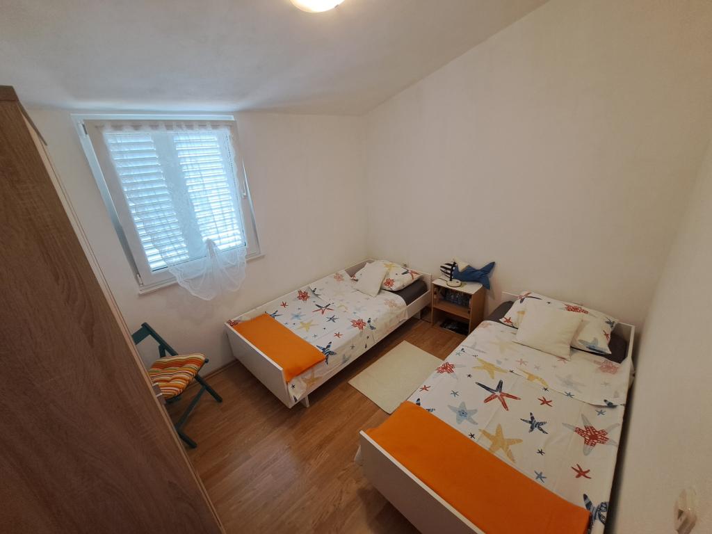 Apartment Moreta is an excellent destination for anyone who needs a quiet vacation, for families with up to 3 children or active people. It has a great location in the middle of a former olive grove, literally a minute to the pebbly beach, which is in a quiet bay, great for swimming. The owners are very friendly and helpful, but not intrusive at all. A big plus is the shaded parking space for the car, there is an outdoor grill, a well-stocked shop is 50 meters away, as well as a bakery and a daily fruit/vegetable vendor. In the two-room apartment, everything is in its place, everything is clean and maintained. Plus there is a balcony with an awning overlooking the sea, mosquito nets and air conditioning, wi-fi... Apartment Moreta has one of the best locations in Pašman, right next to the bridge with Ugljan. It allows a quick jump into the sea or is an excellent starting point for discovering the other beaches on both islands, cycling, trekking, starting point for a boat...