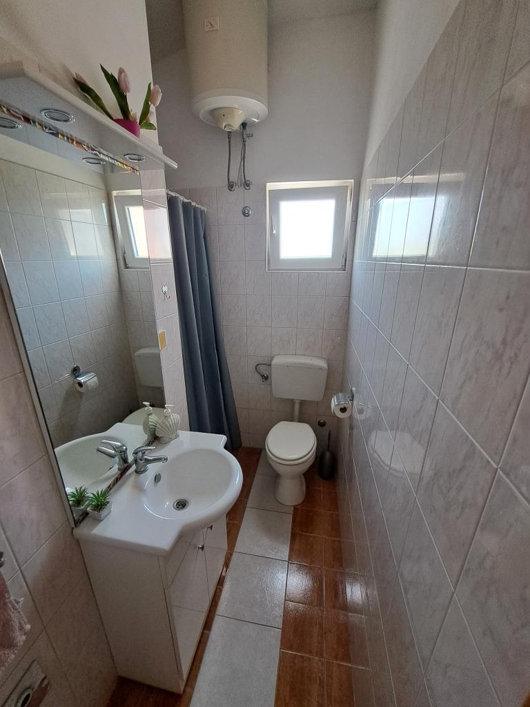Neat and spacious apartment, the terrace has a view of the sea, the yard is large and full of greenery. The shop is right next to the house, as well as the beach, which is a minute's walk away, the beach is pebble, has natural shade, benches to sit on, swings for children... The owners are wonderful people! My family and I recommend Moreta apartments to everyone who wants to rest, relax and enjoy the sea!